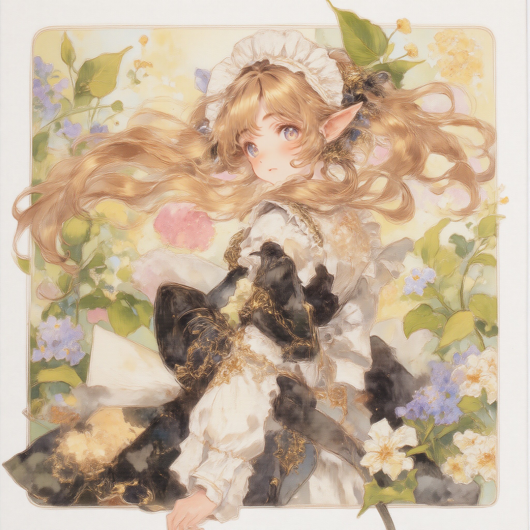 Steps: 20, Sampler: Euler, Schedule type: Simple, CFG scale: 1, Distilled CFG Scale: 3.5, Seed: 1963897755, Size: 1024x1024, Model hash: 2abace2516, Model: lyhAnimeFlux_v4Niji, Denoising strength: 0.4, ADetailer model: face_yolov8n.pt, ADetailer confidence: 0.7, ADetailer dilate erode: 4, ADetailer mask blur: 4, ADetailer denoising strength: 0.2, ADetailer inpaint only masked: True, ADetailer inpaint padding: 32, ADetailer version: 24.11.1, Hires upscale: 2, Hires steps: 5, Hires upscaler: Latent (antialiased), Lora hashes: "OB中世纪油画v1.1: 23f55d77b202, OilpaintAnythingV2: ca251da30283, gmic Style _F1 Watercolor style V1: d077bd9e08a2, kiri: 9da73ec82753", Version: f2.0.1v1.10.1-previous-528-ge55cde9b, Module 1: ae, Module 2: clip_l, Module 3: t5xxl_fp16