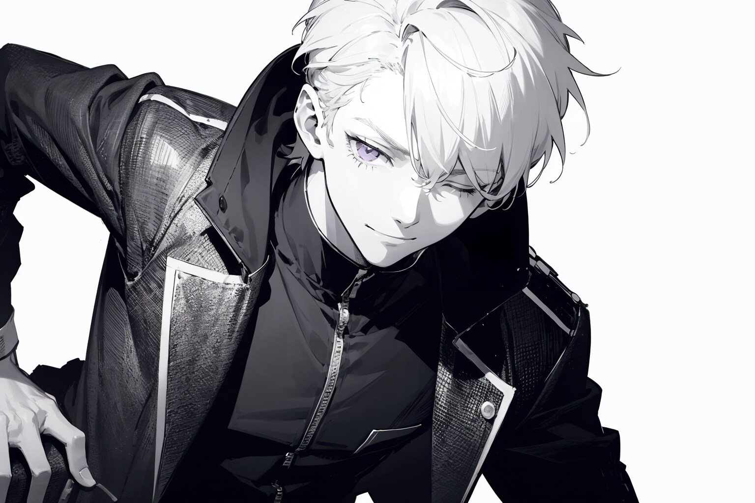目に色だけがついているモノクロ、白黒イラストの企画で