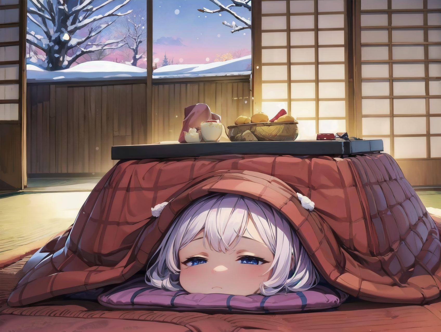 こたつに頭から突っ込ませたかったんだけど無理でした。