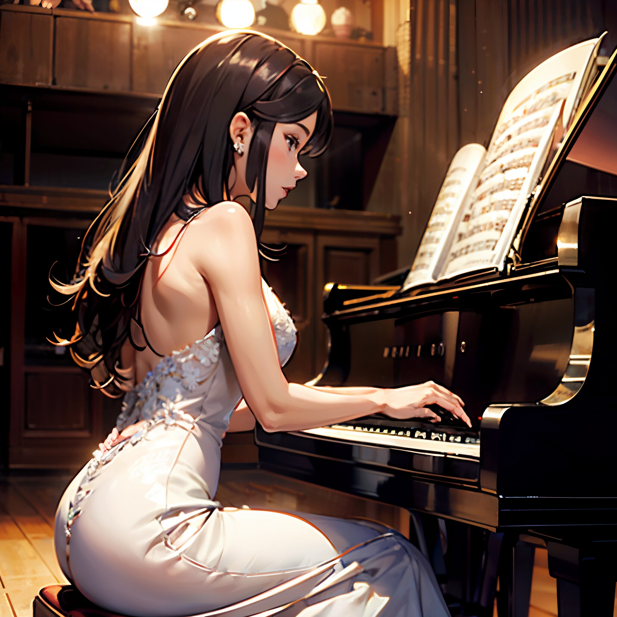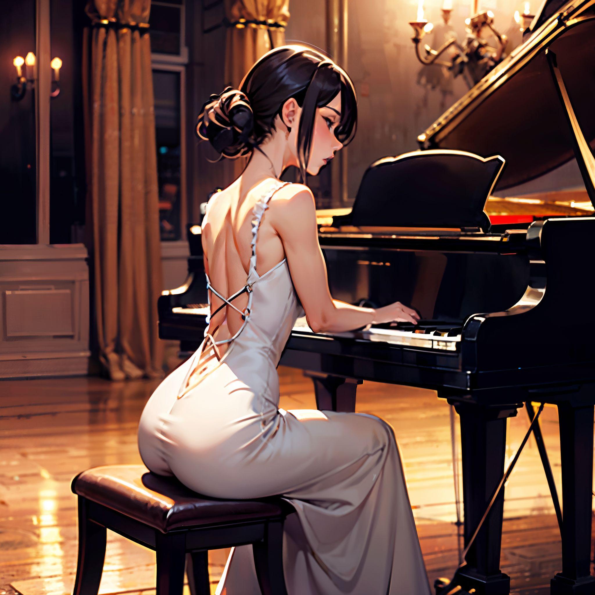 コンサート風、オーケストラと一緒、バーの片隅で引いてる感じまで描いてみました。