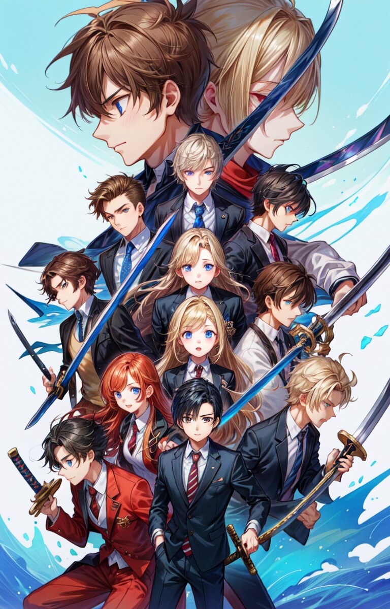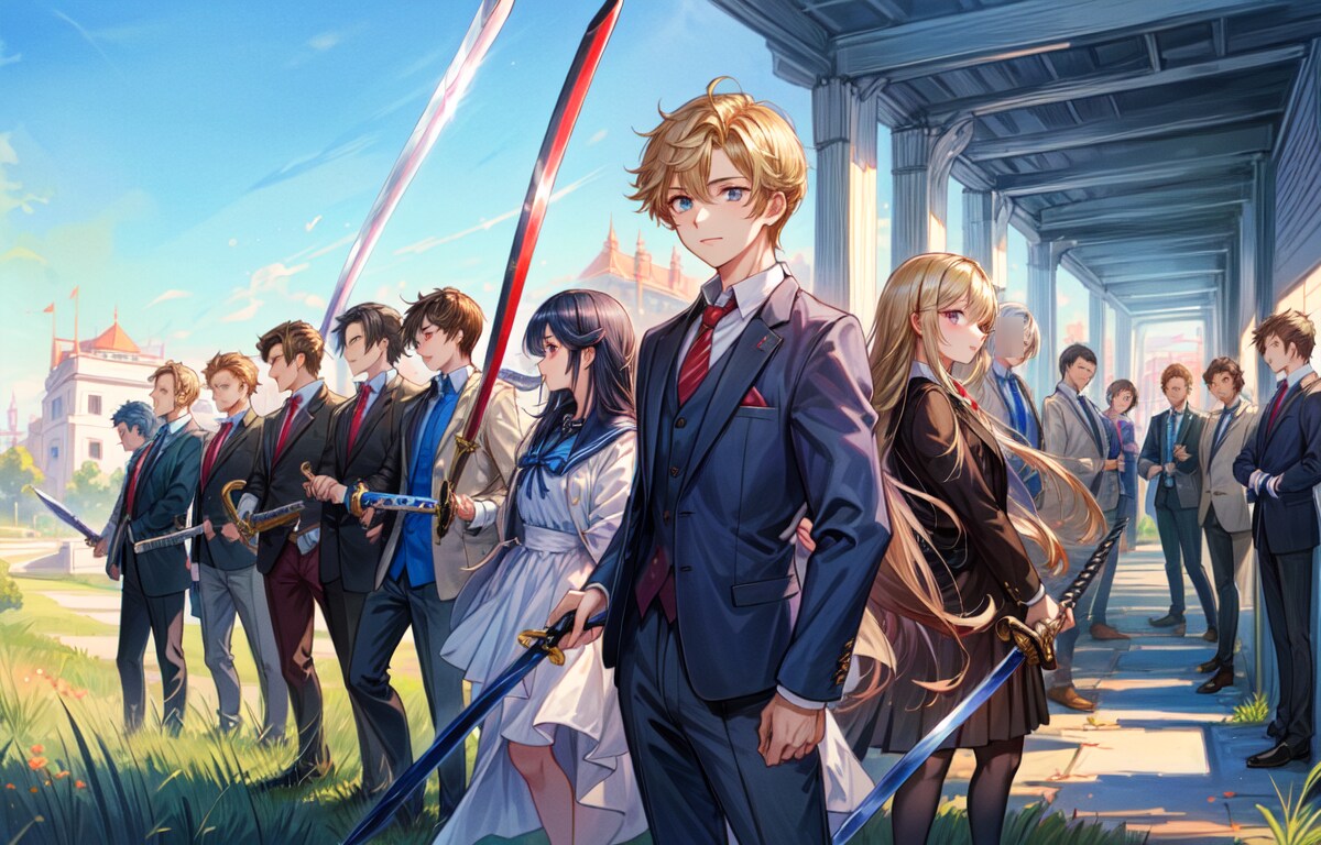 今回生成する前に、何度かキャラが剣を持っているイラストを生成しては、剣の持ち方が変なイラストを量産してきたので、今回のお題はとても不安でした…。でもAIピクターズモデルのおかげで、今回はカッコよく剣を持っている高校生が結構できてよかったですー。ありがとう、AIピクターズモデル!!