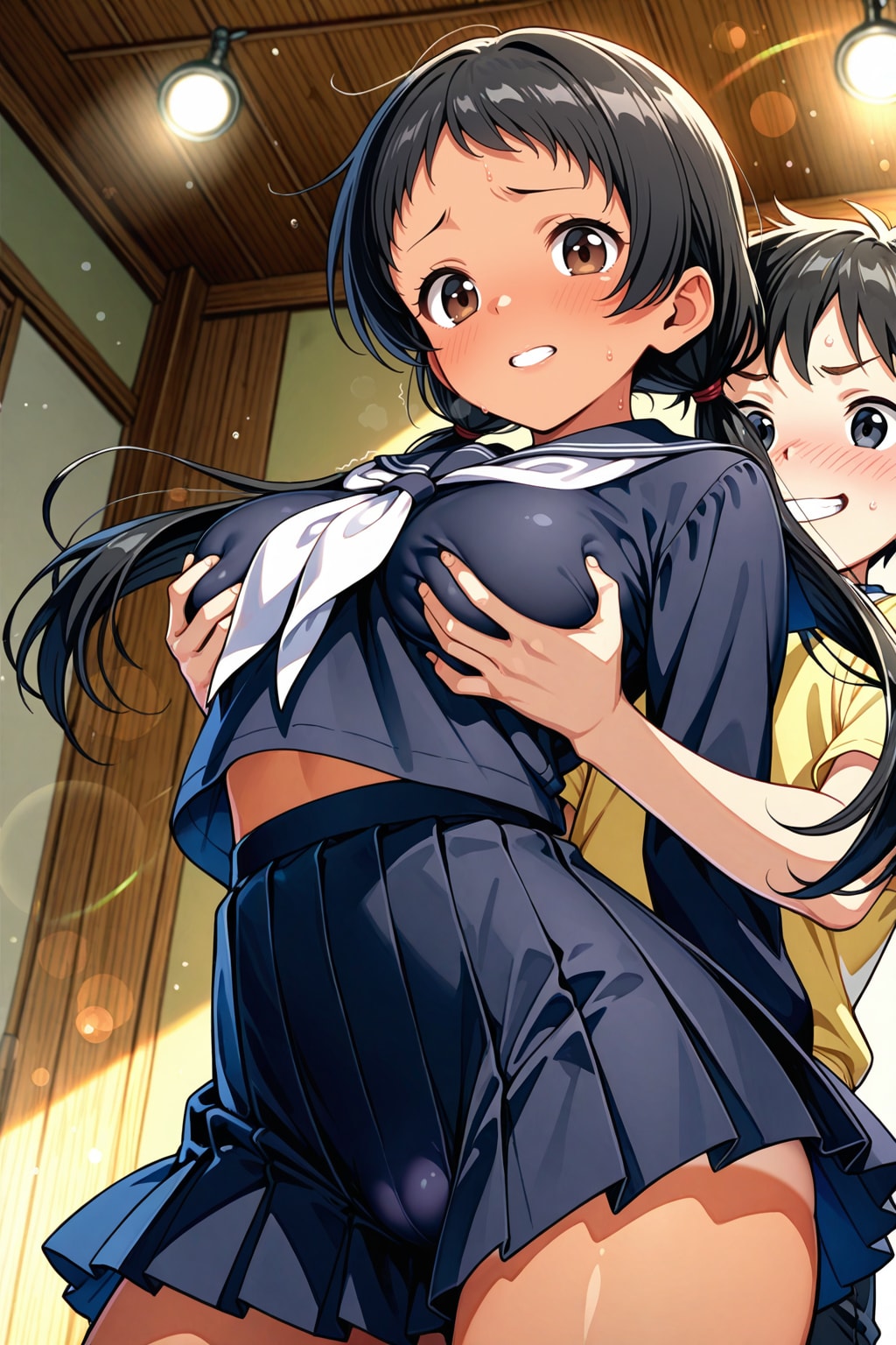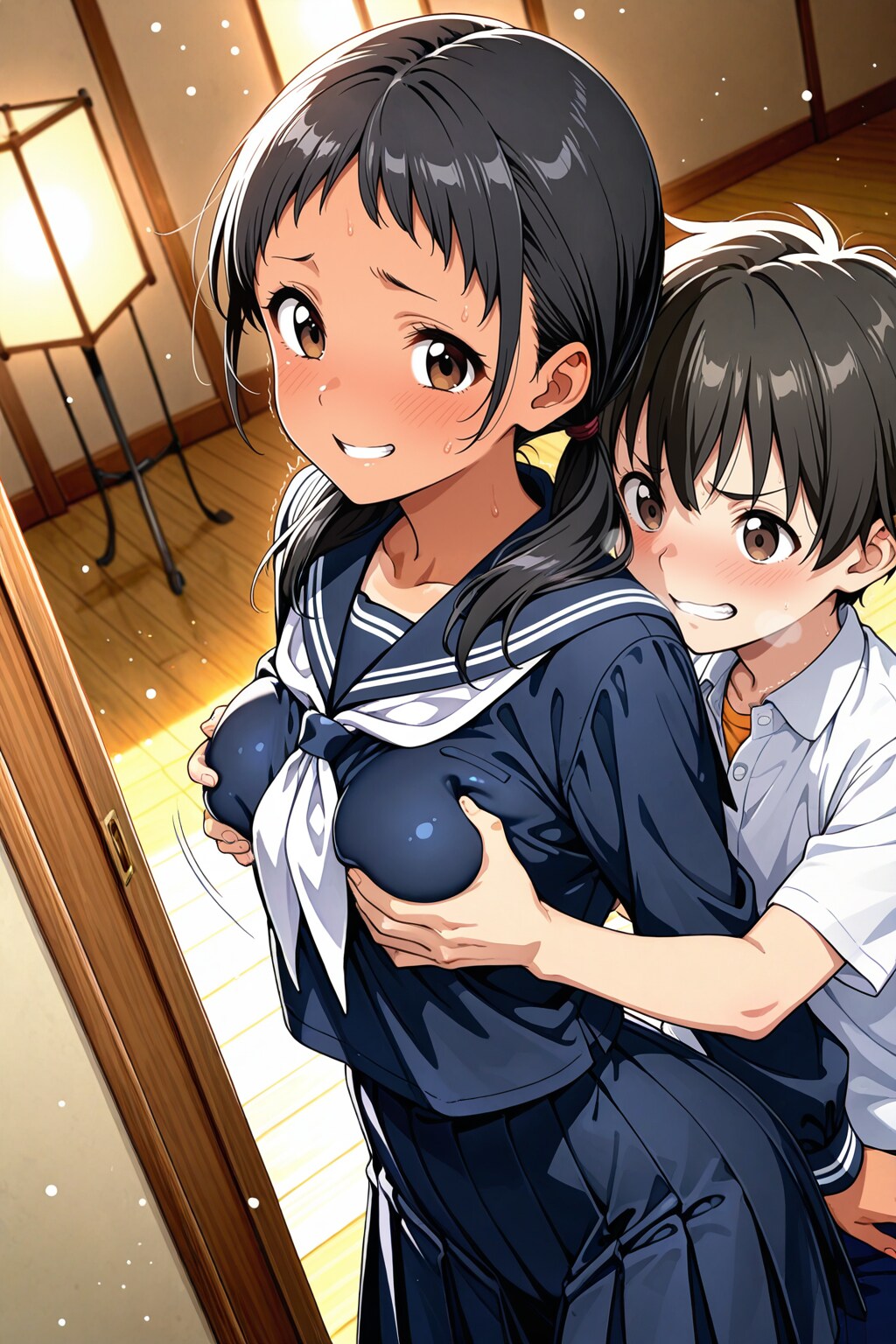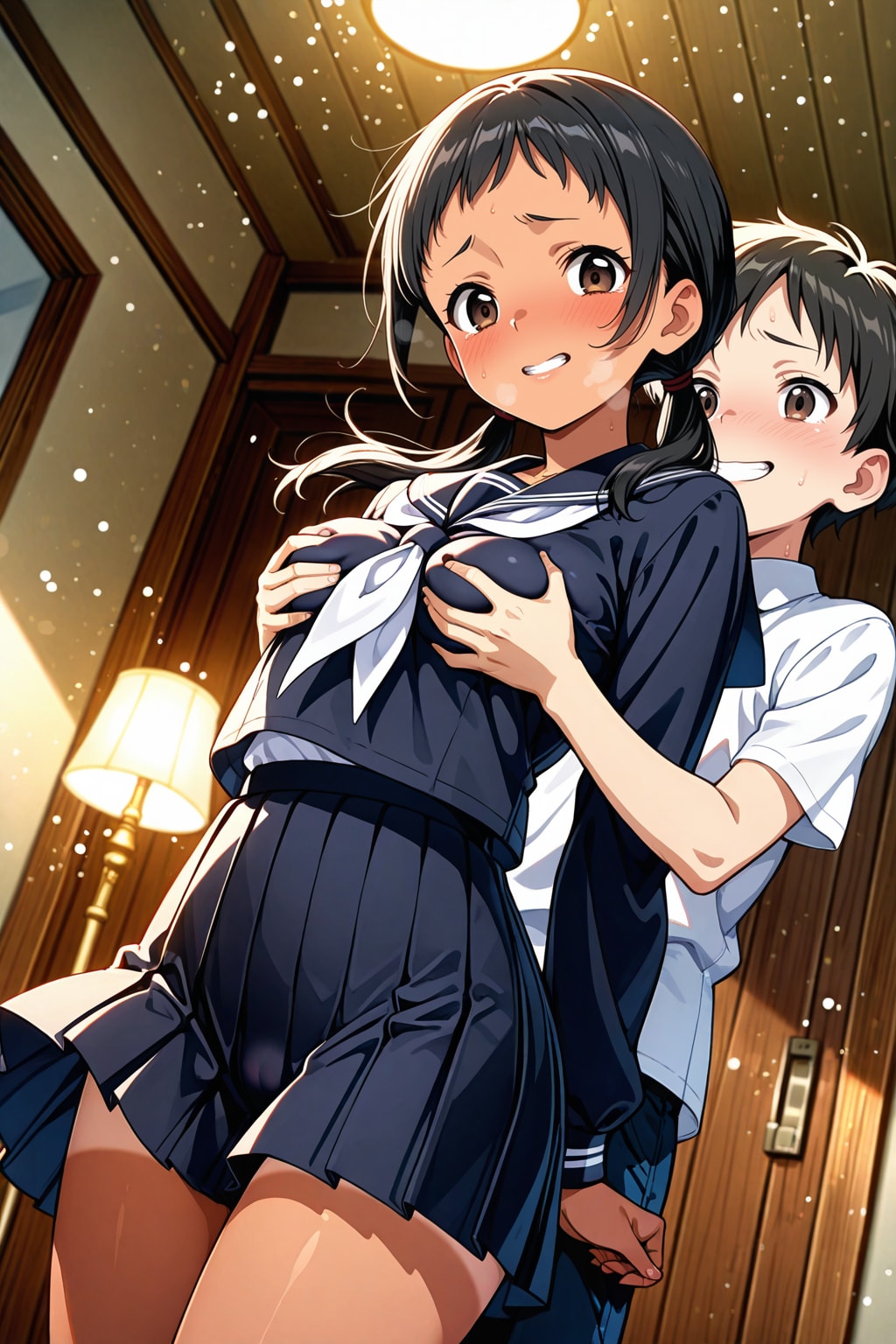 純朴な田舎風褐色っこやなぁ…黒セーラーに白ネクタイかー今中々見ないなぁ…