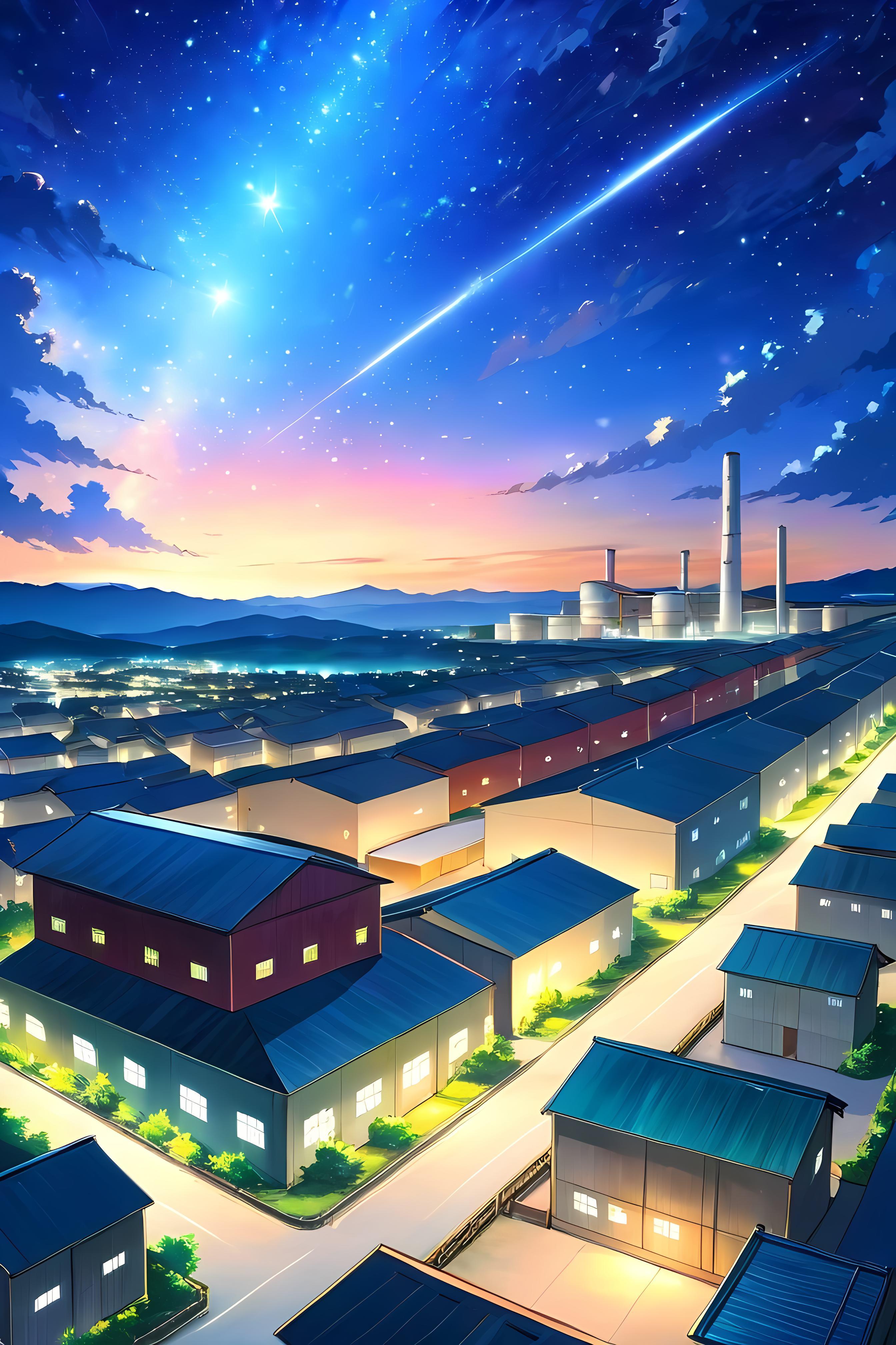 少し近未来のぽっちゃり共和国の工場夜景を描いてみました!
