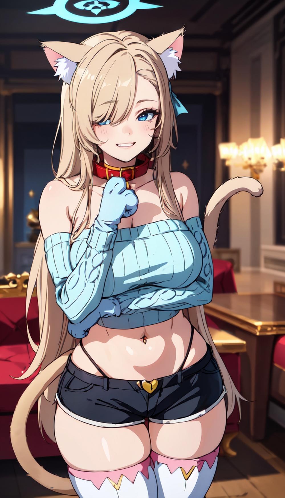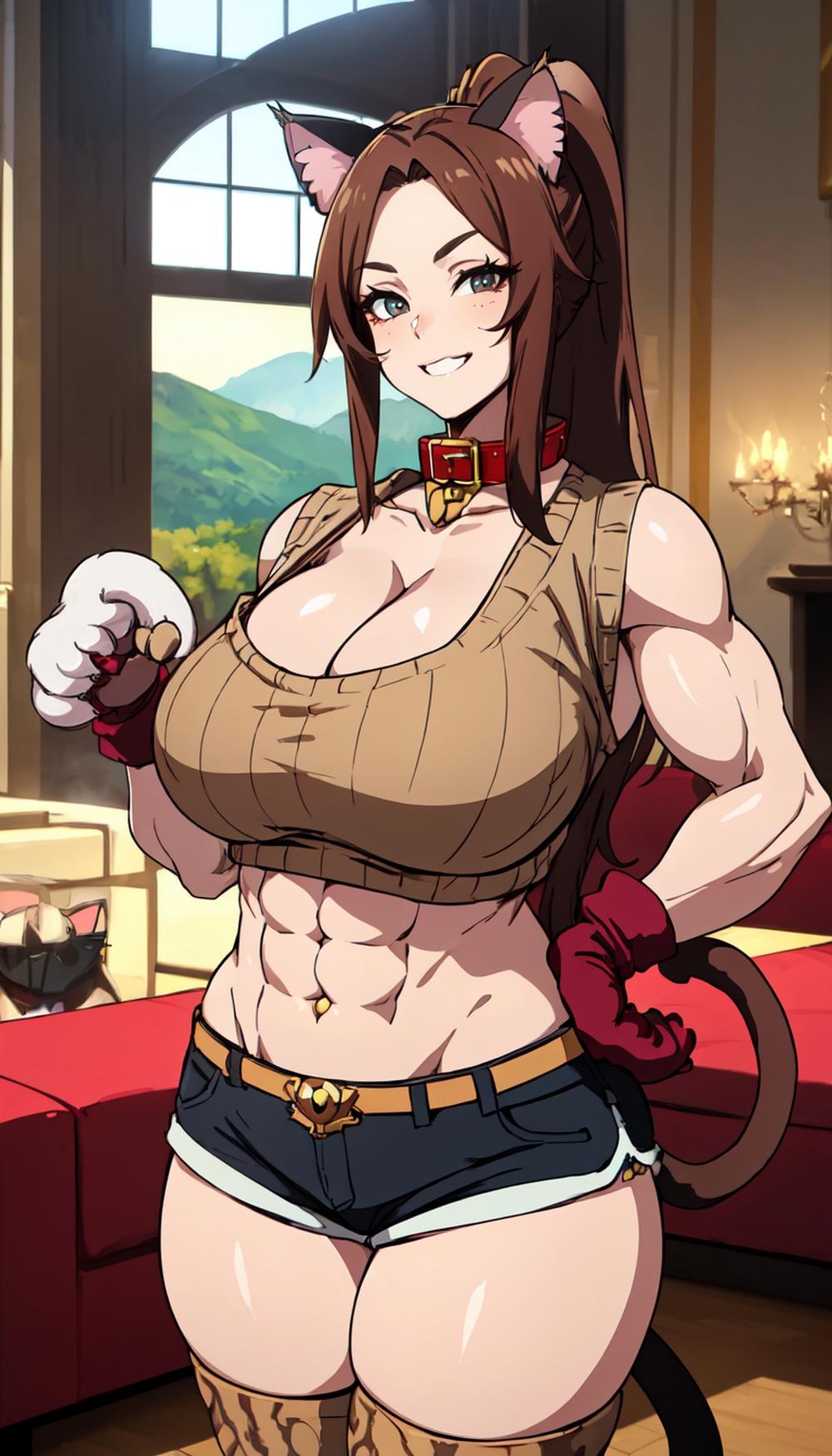 モンスター娘猫娘コスプレ人妻達 セーター&ホットパンツ