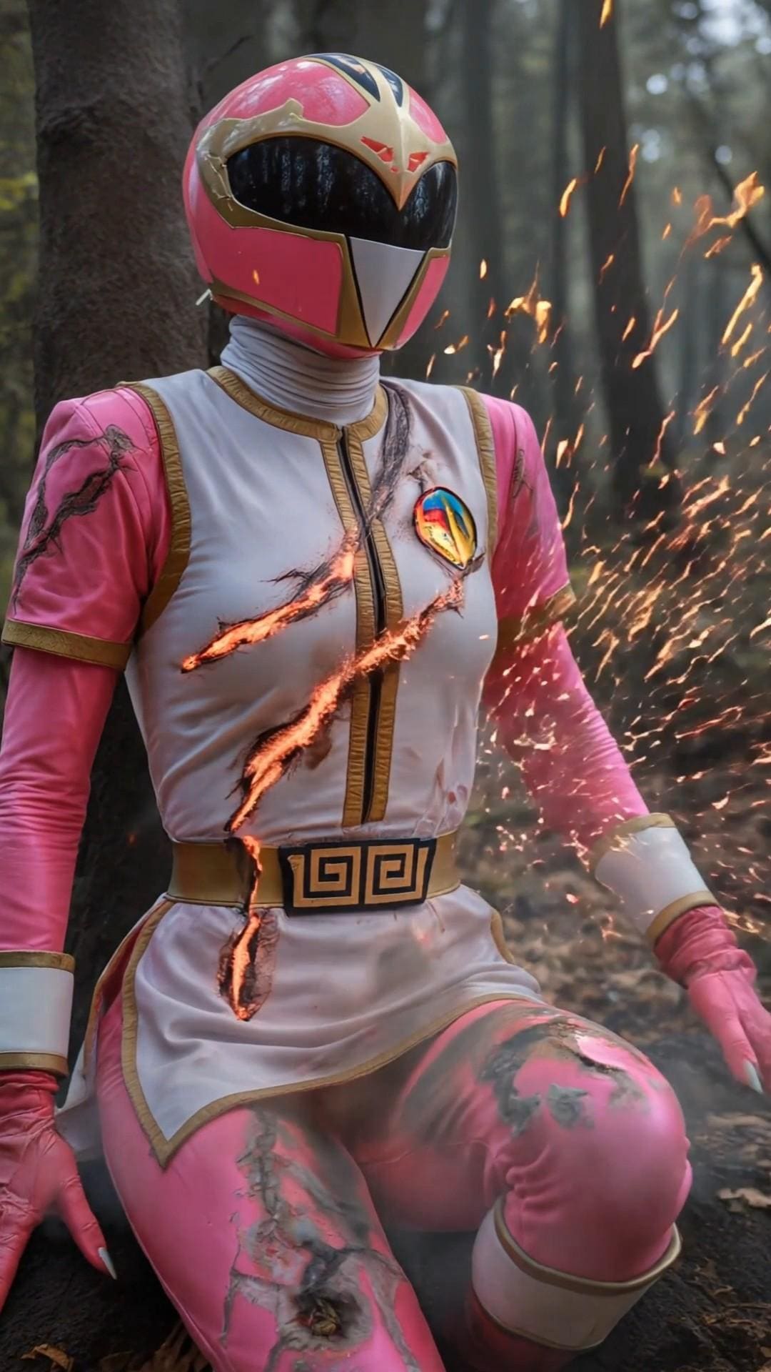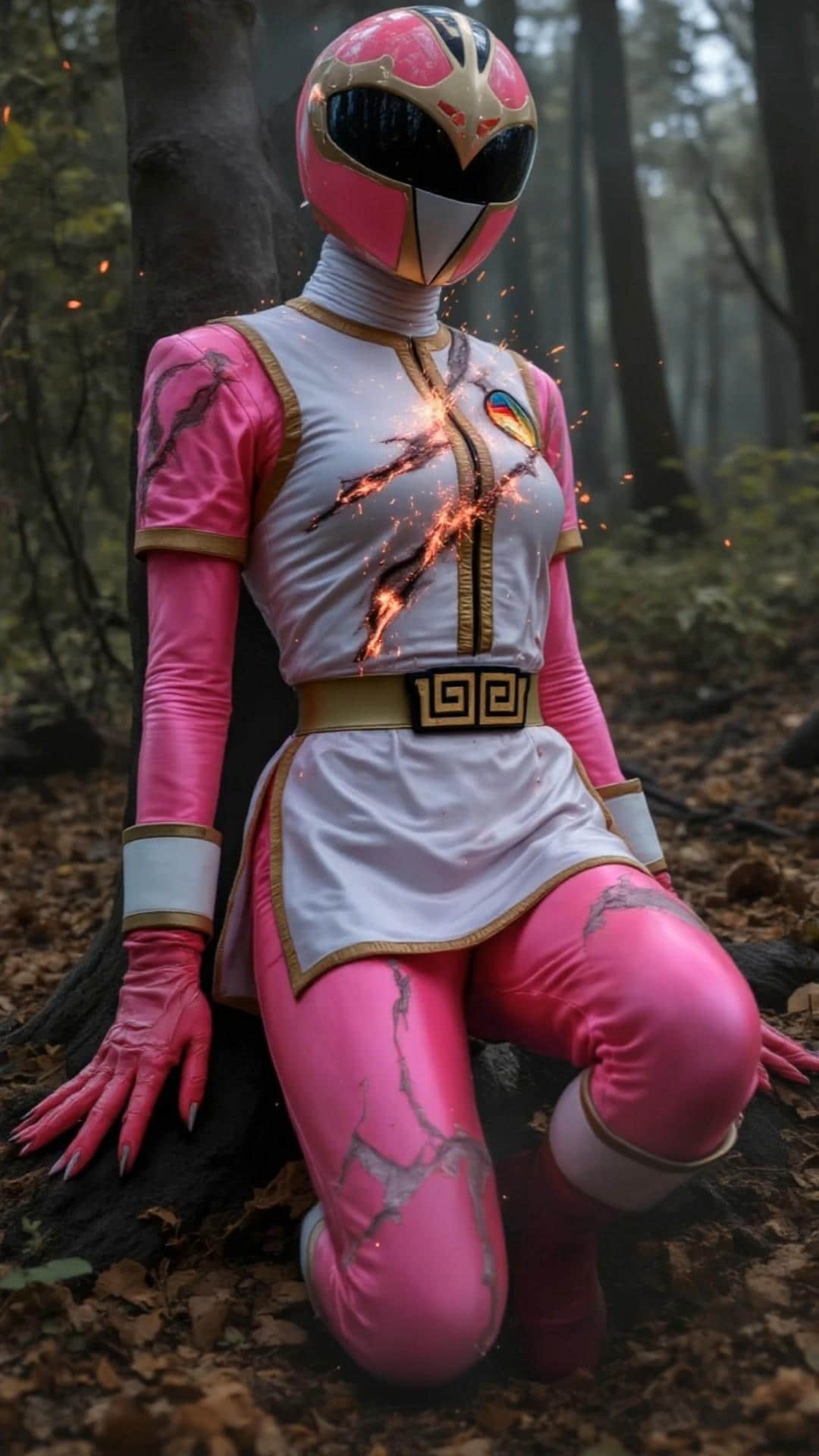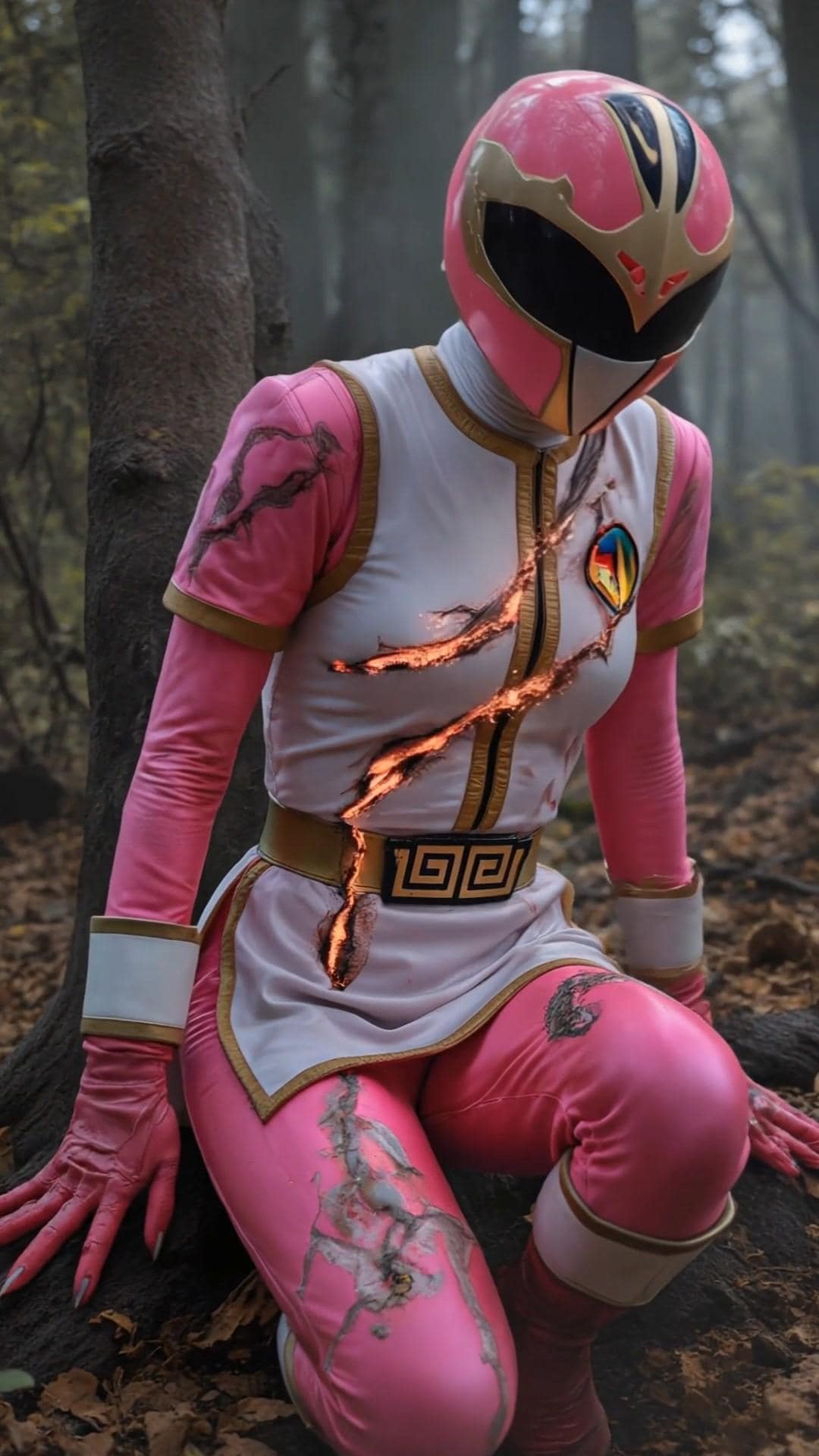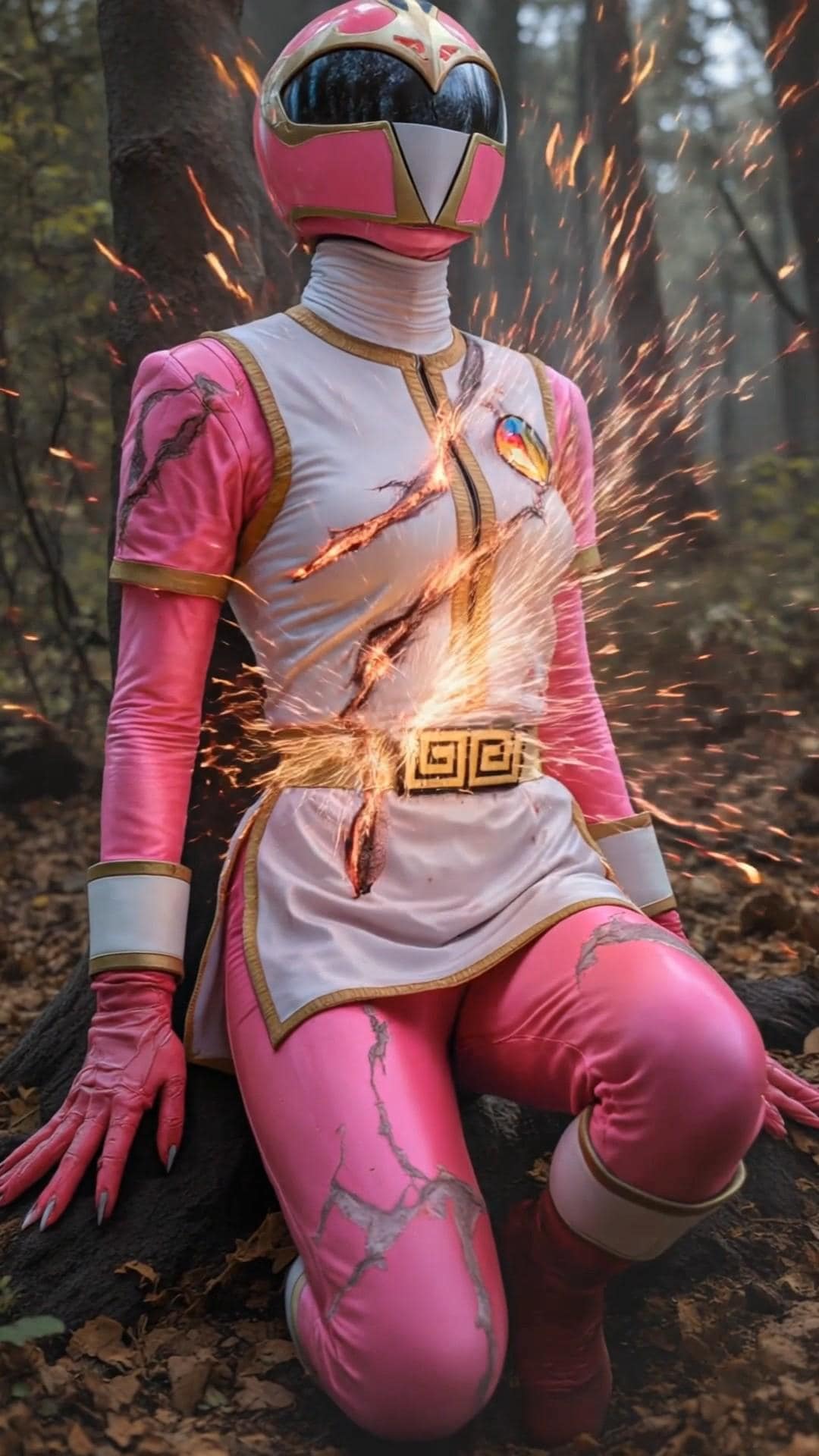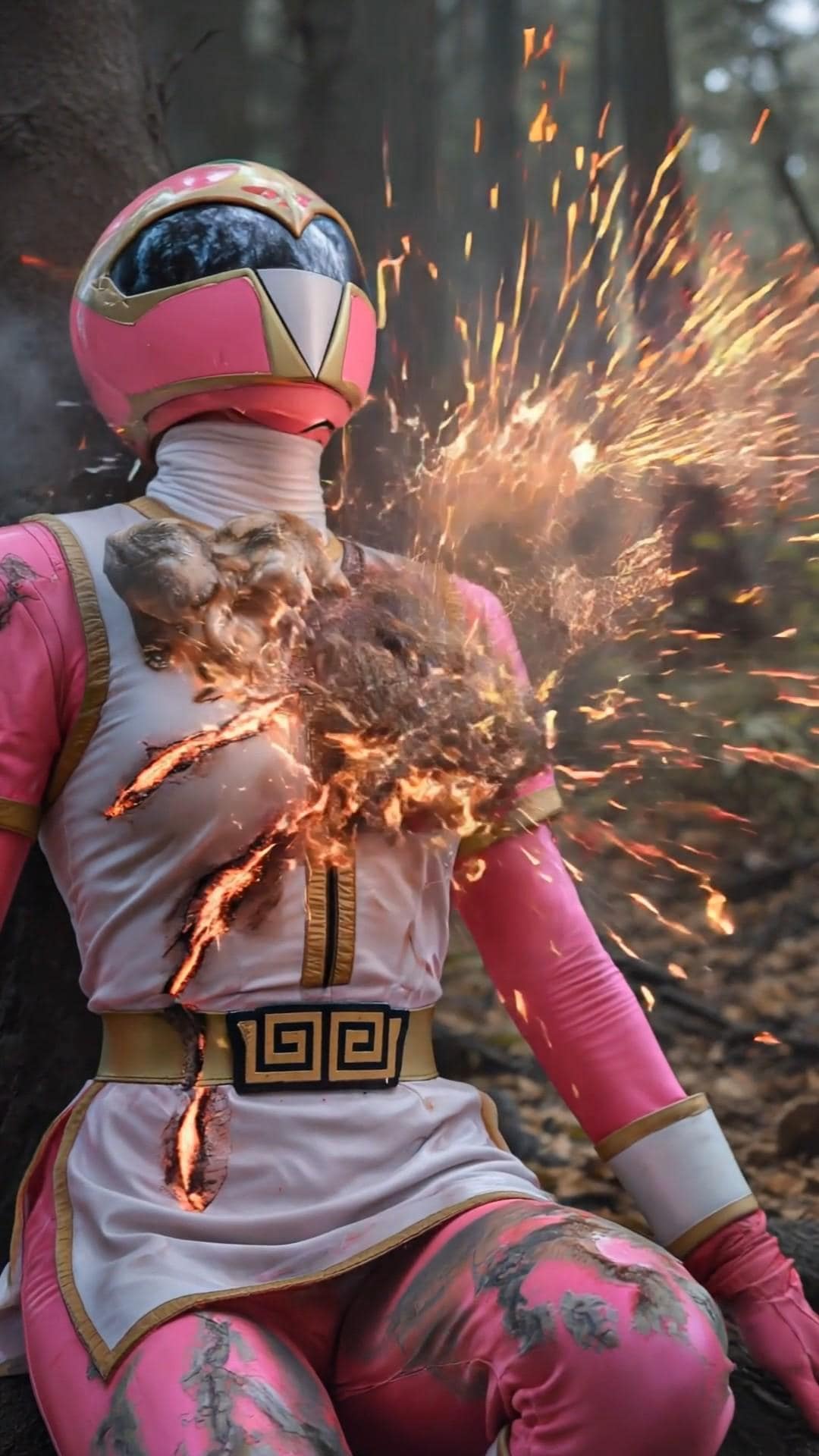 爪痕のような傷を起点に内部から爆発するスーツ