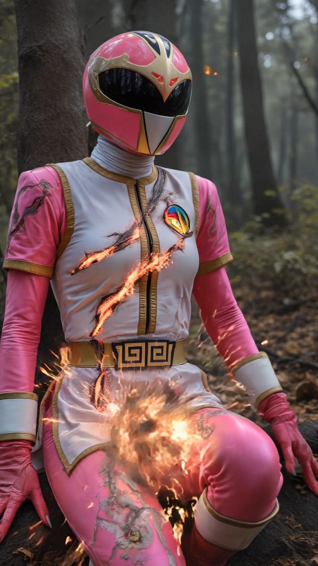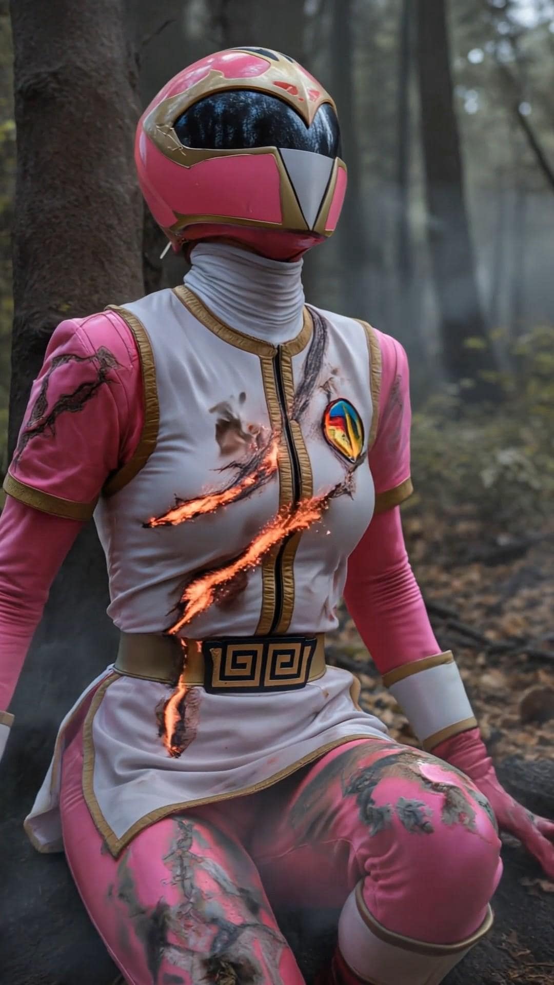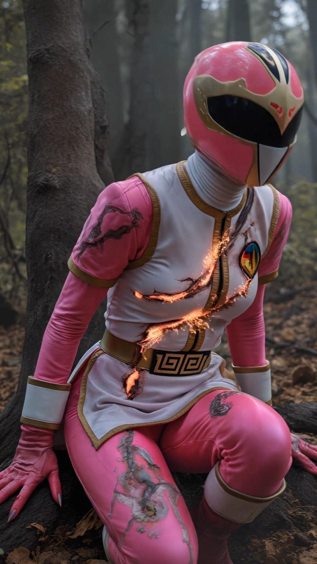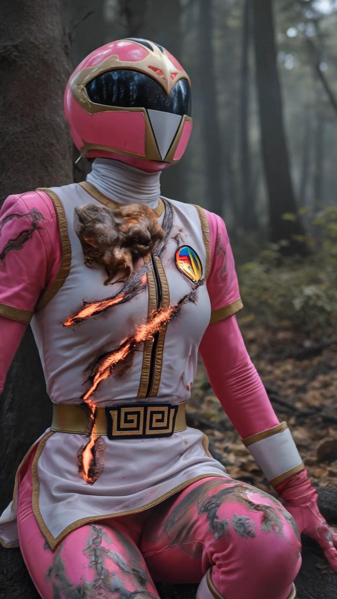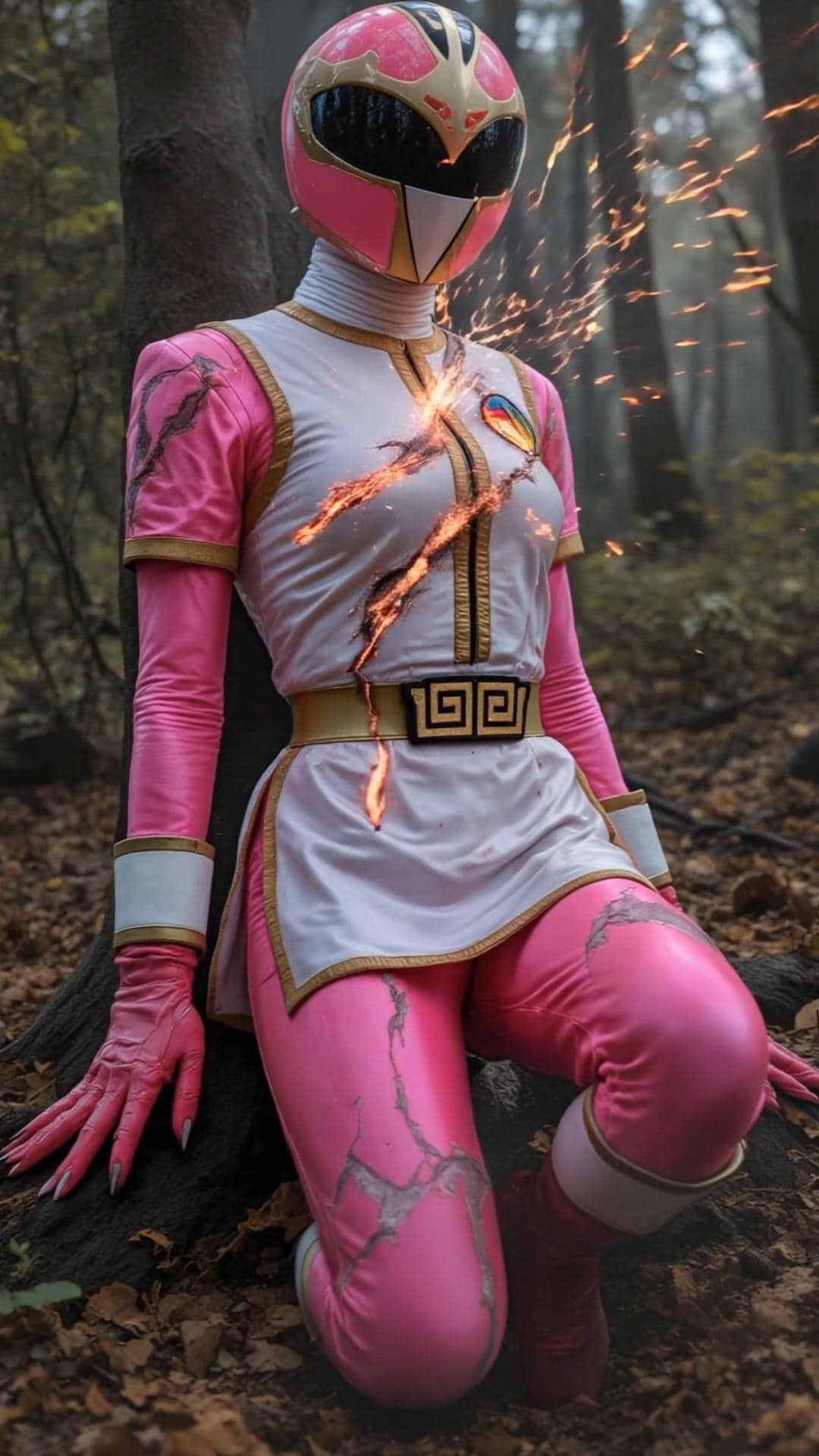 爪痕のような傷を起点に内部から爆発するスーツ