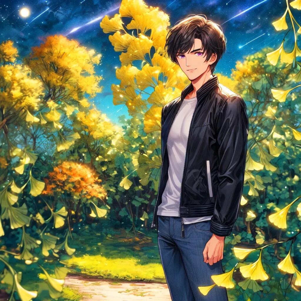 銀杏並木と、黒髪短髪男性*その1(2枚)