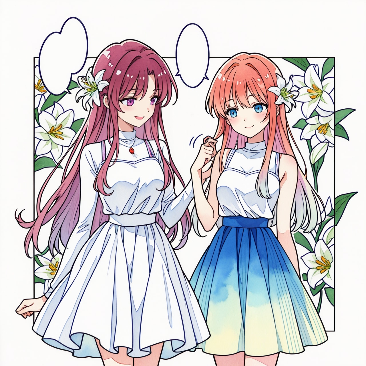 (お好きな百合セリフを入れて楽しんでください💕)百合女の子達の吹き出し付きイラスト♪