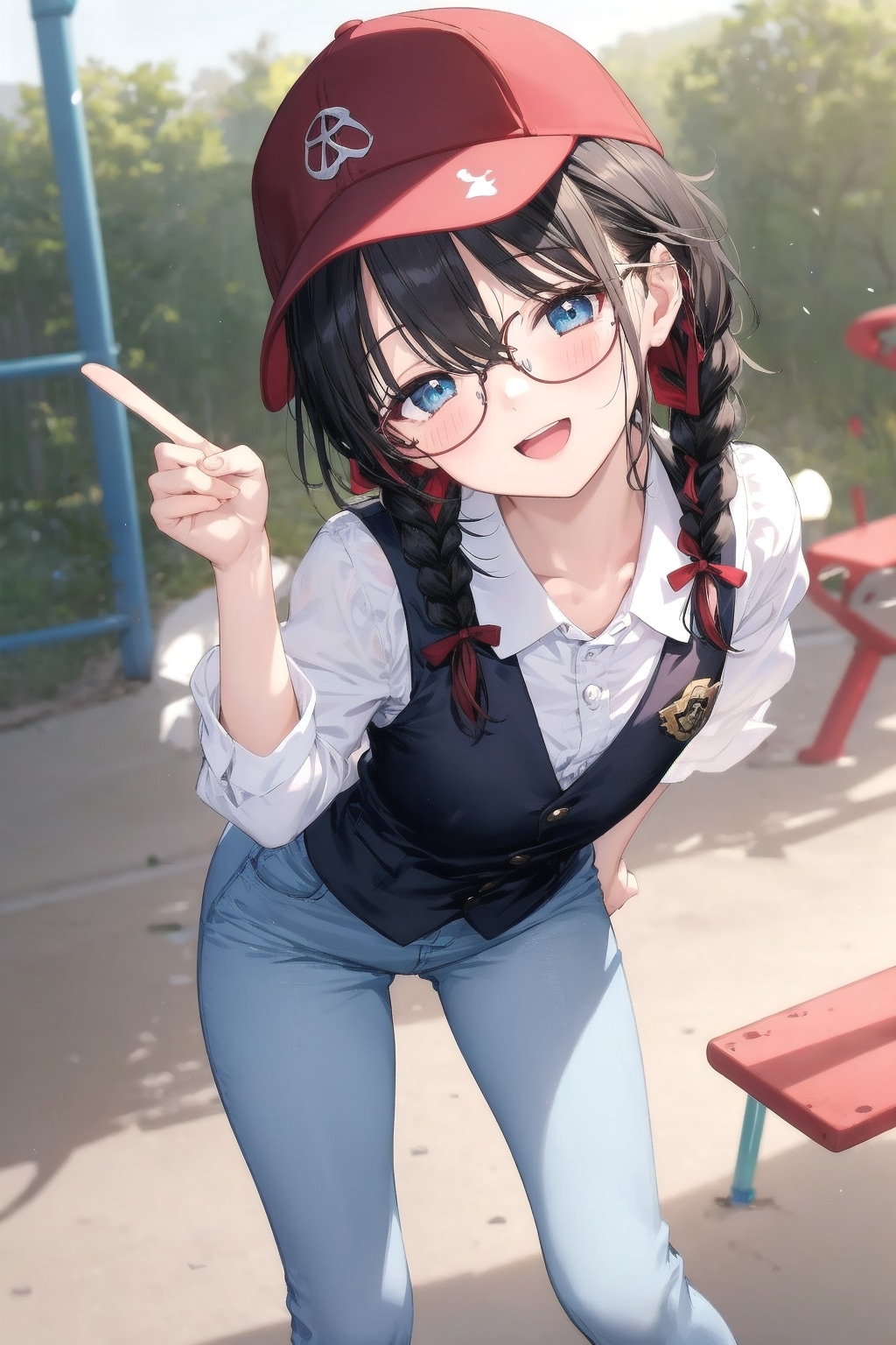 赤い野球帽に青いベスト、白シャツ、青いロングパンツといういでたちになりました。あこちゃんがどういう子なのかの情報がちょっと少ないのでおしとやかでも活動的でもどこに行っても大丈夫そうな普段着に近い服装ですね。