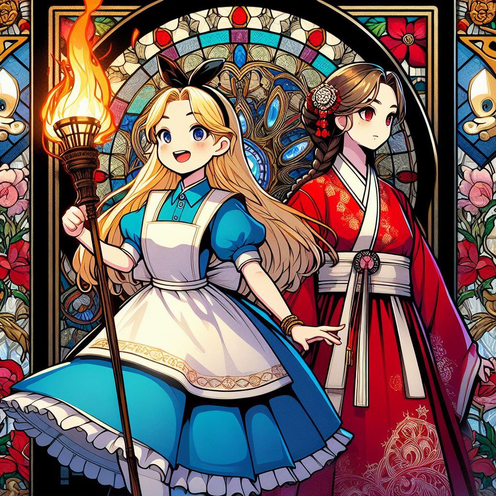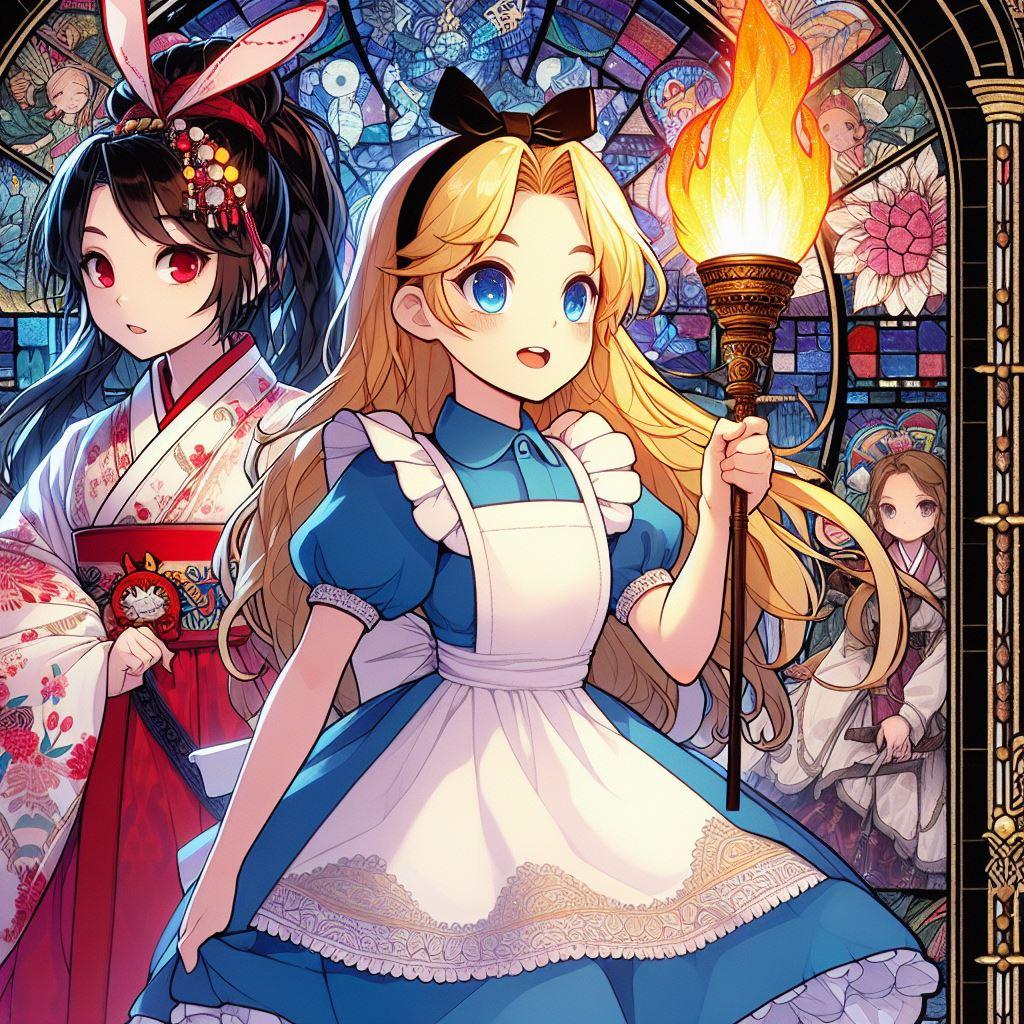プロンプトは「Alice's Adventures in 」+作者名のみ +「land」