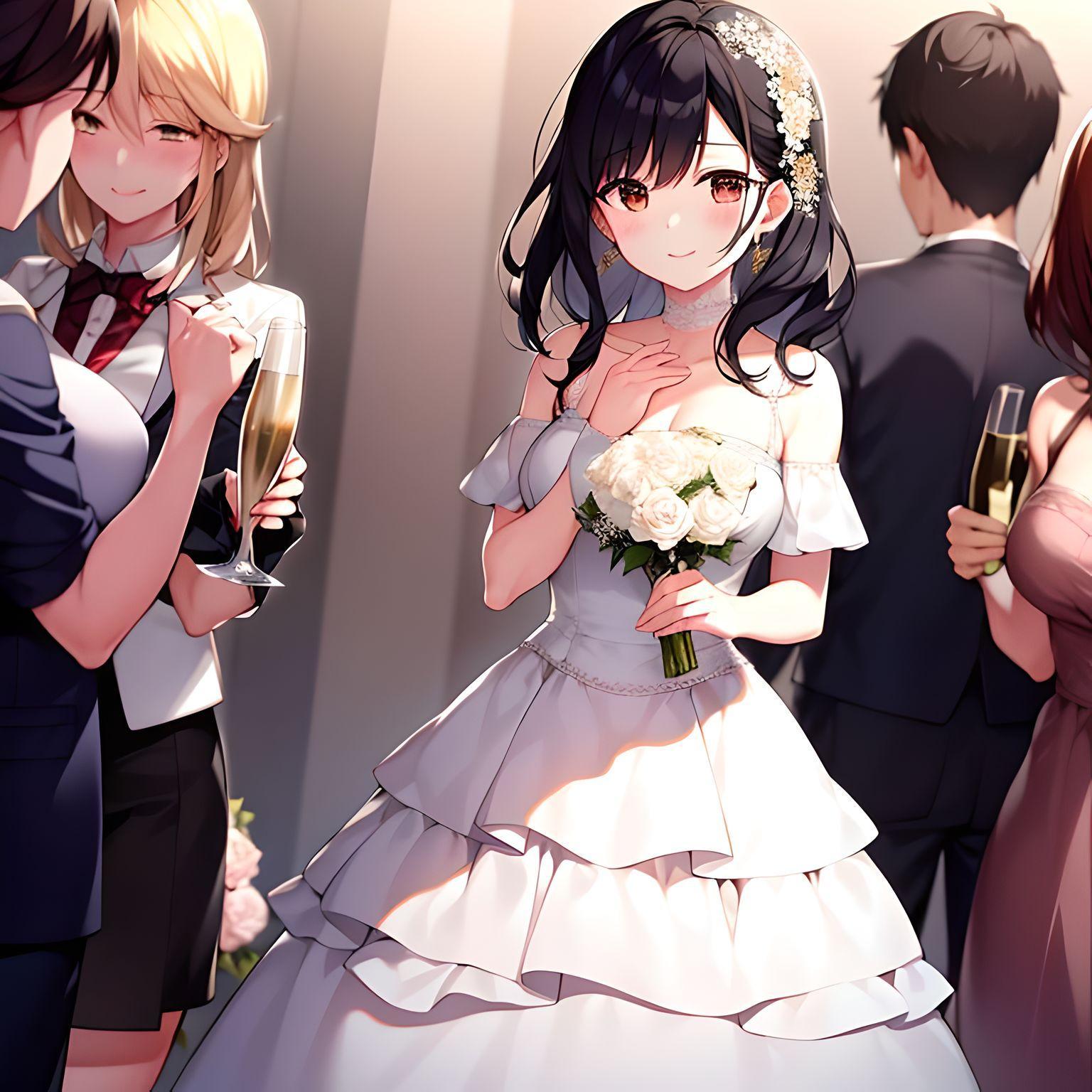 1周年の式典に参加する10人以上の女性達、シャンパンシャワー、沢山の花束