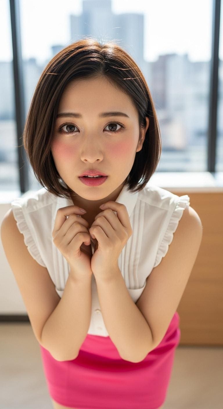 美人受付嬢に、かわいさ全開をやってもらいました。ノリノリです😋