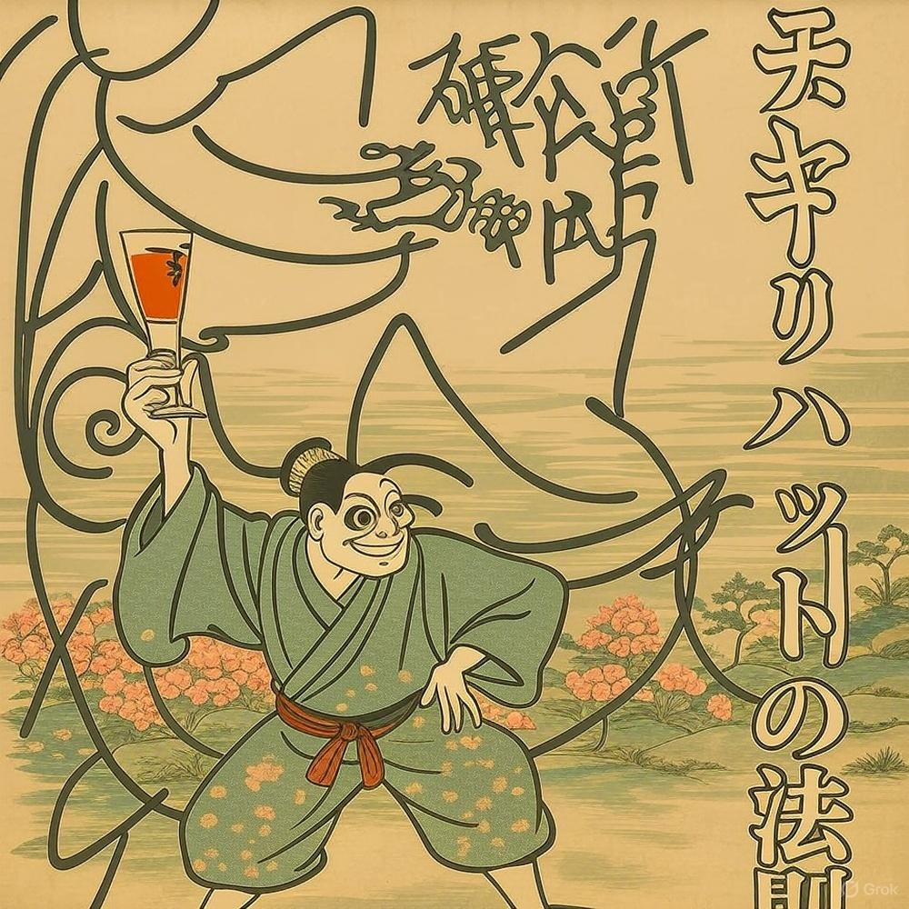 脳内が弾けて発想を飛躍させる液体が大好きな終劇社の研究者、ニヤリノ・ニャット氏は浮世絵を好み、世界を常に一変させ得る代物を開発する。例えば、今回は楽画機を使ってダンスし、聴者の心を掴みお祭り騒ぎにゃ
