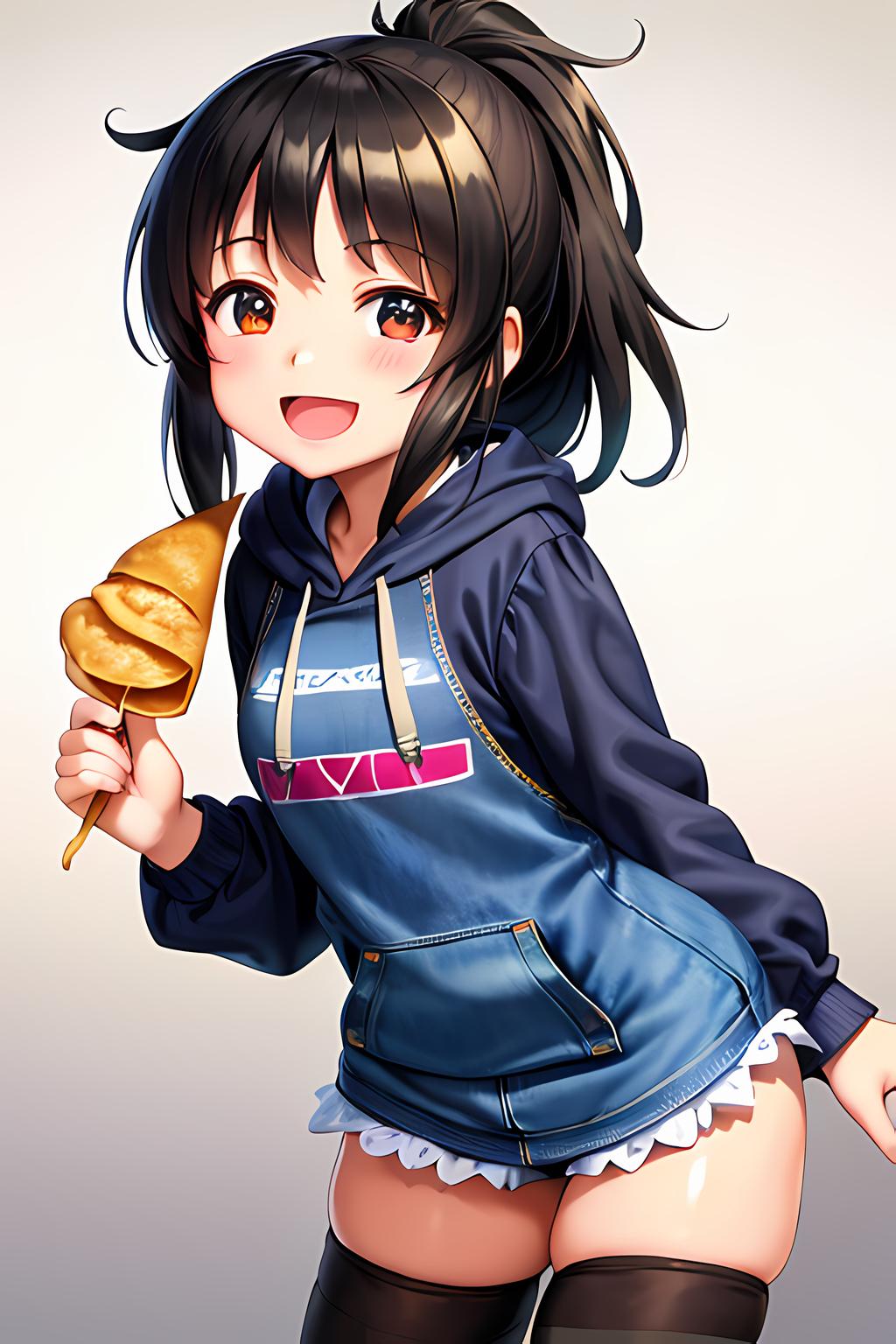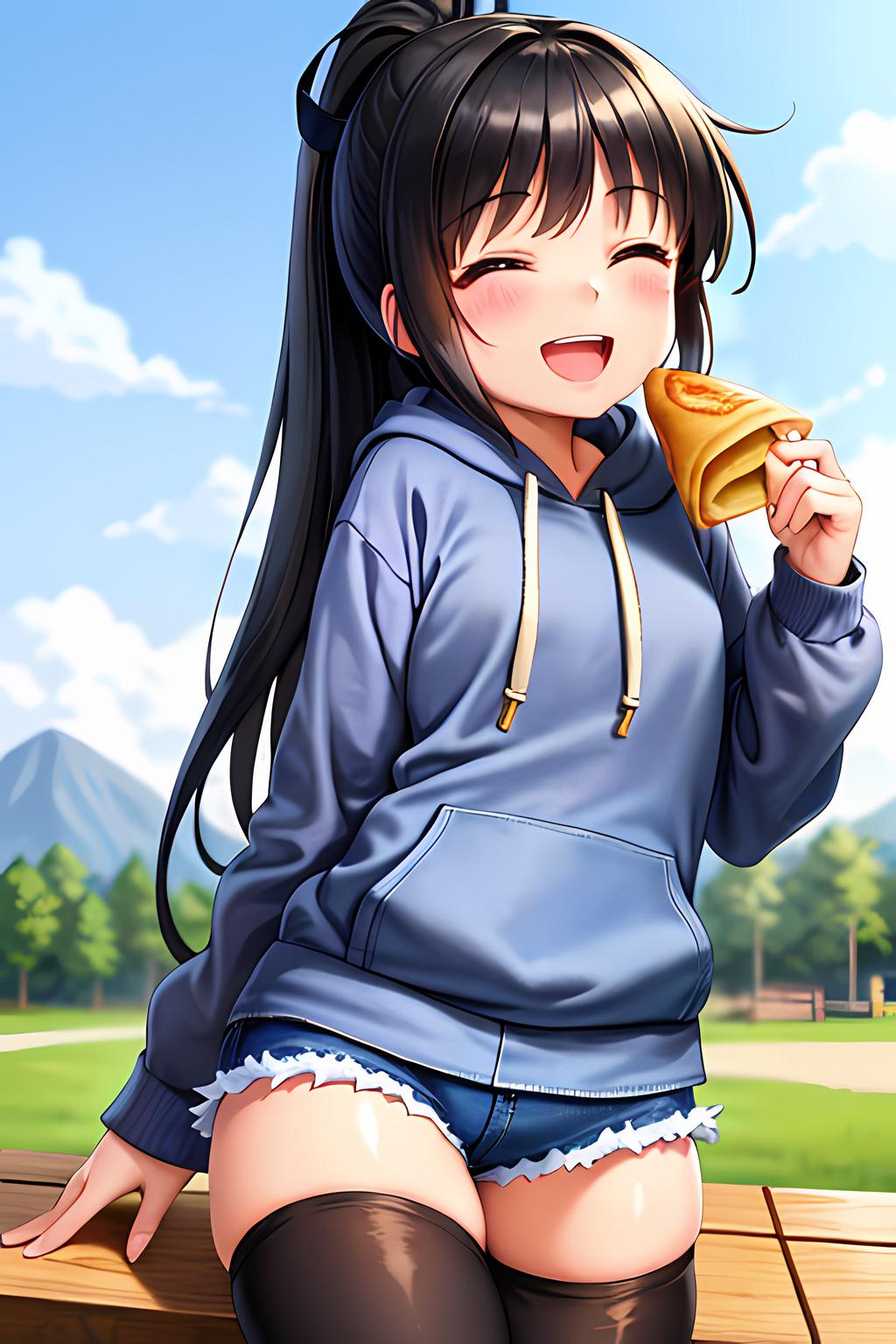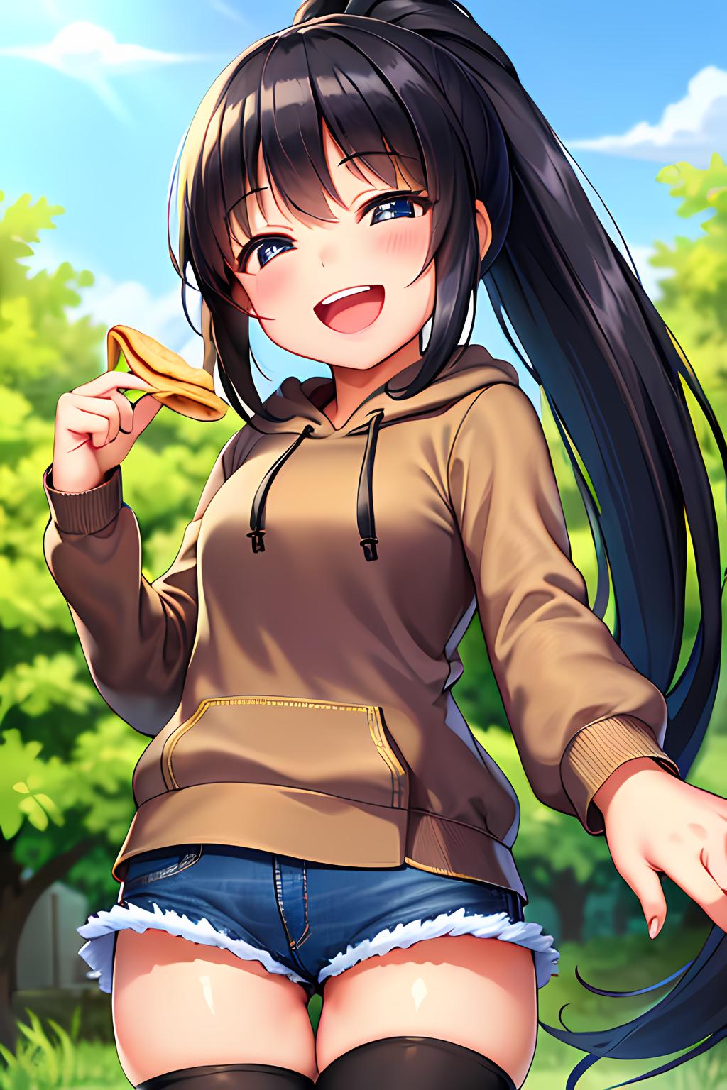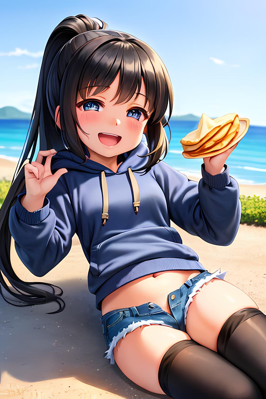 あと、パーカー、デニムショート、絶対領域、貧乳、ポニーテールとある意味癖特盛…いいよね…