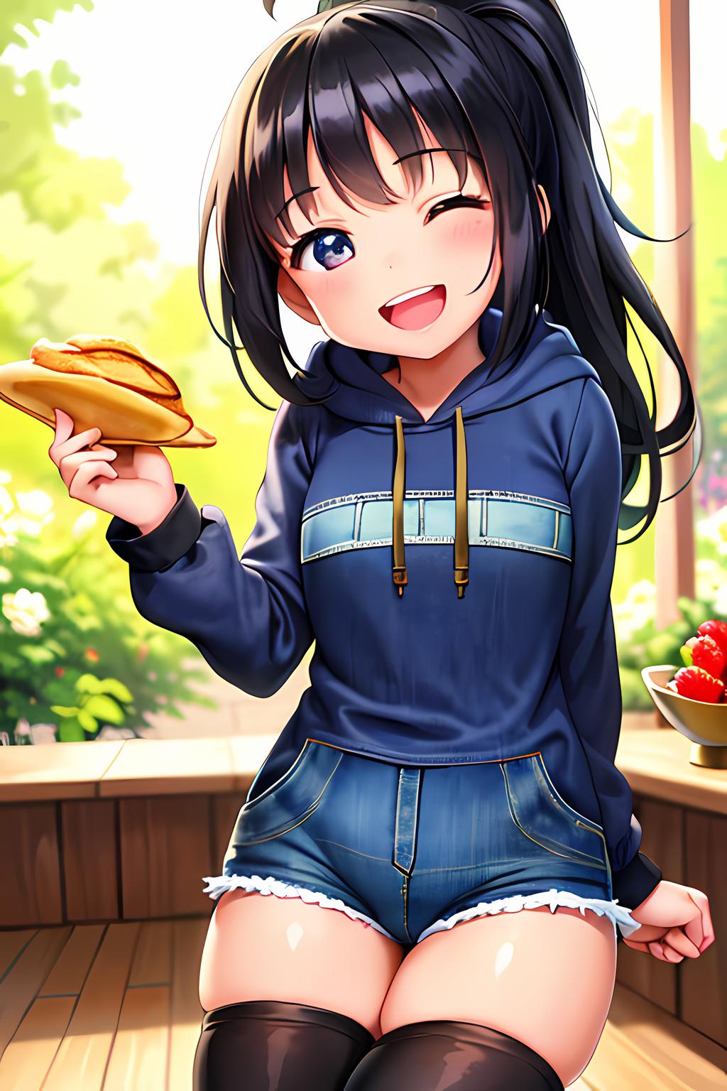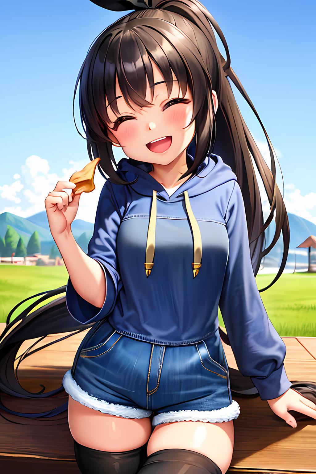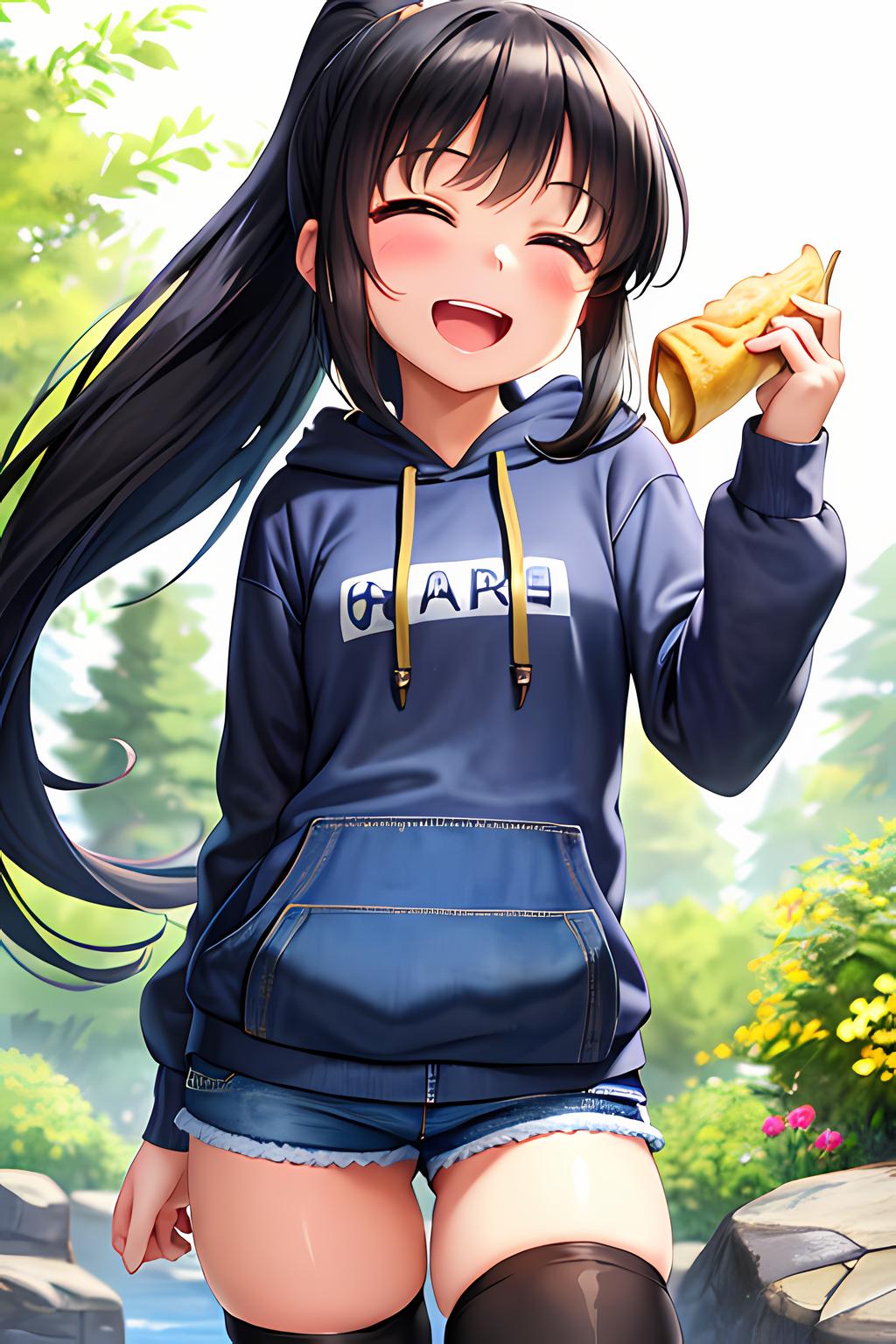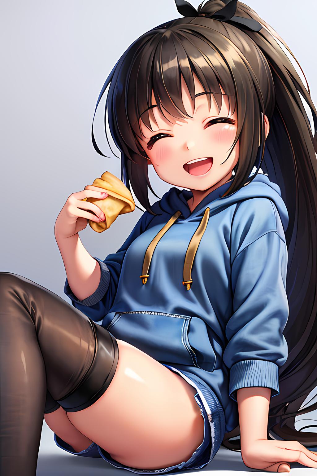 あと、パーカー、デニムショート、絶対領域、貧乳、ポニーテールとある意味癖特盛…いいよね…