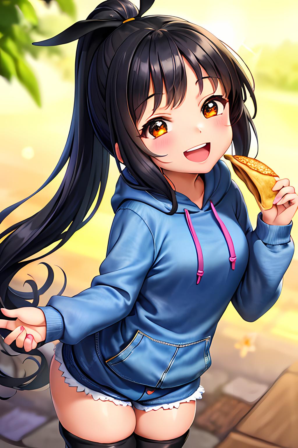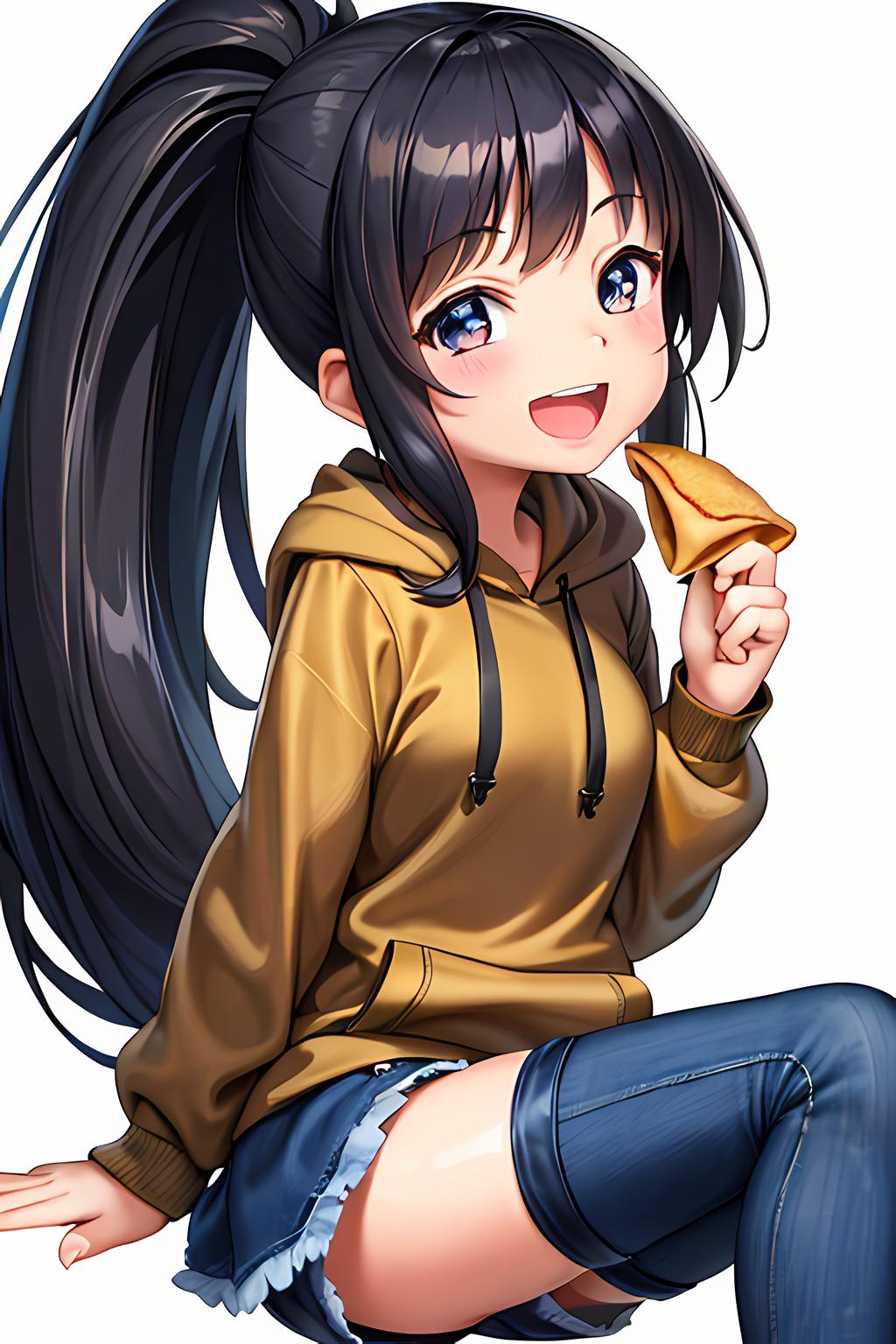 女の子はいつもの黒髪ポニーの茶瞳っ娘(お目々奇麗Ver)