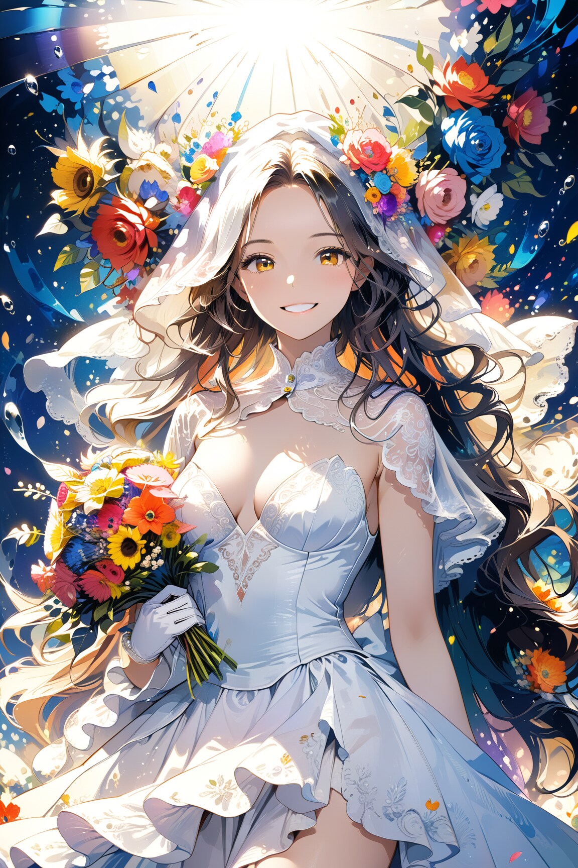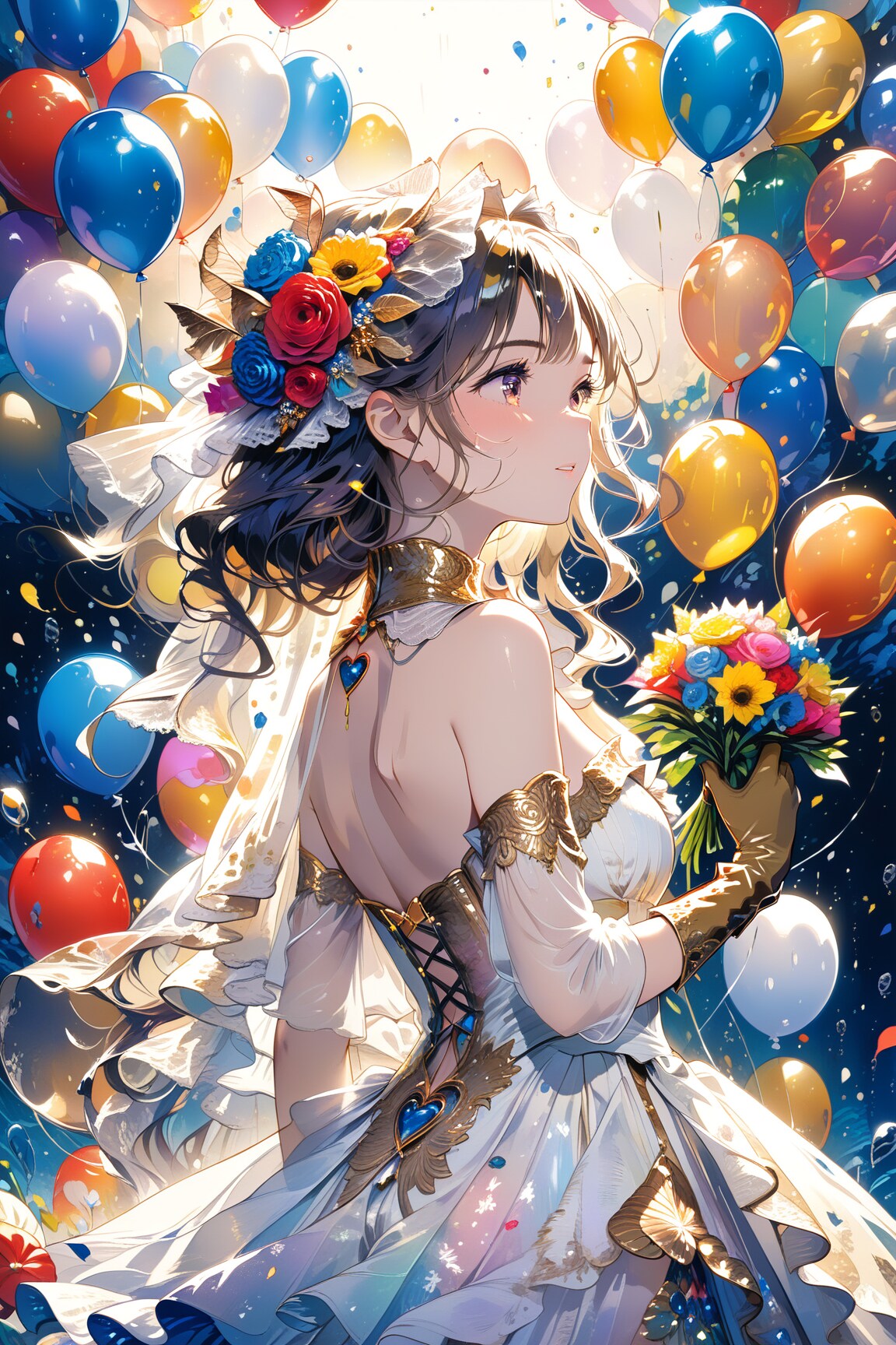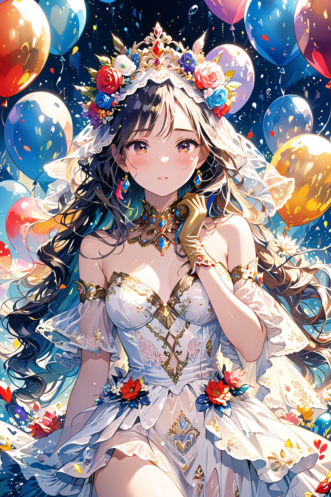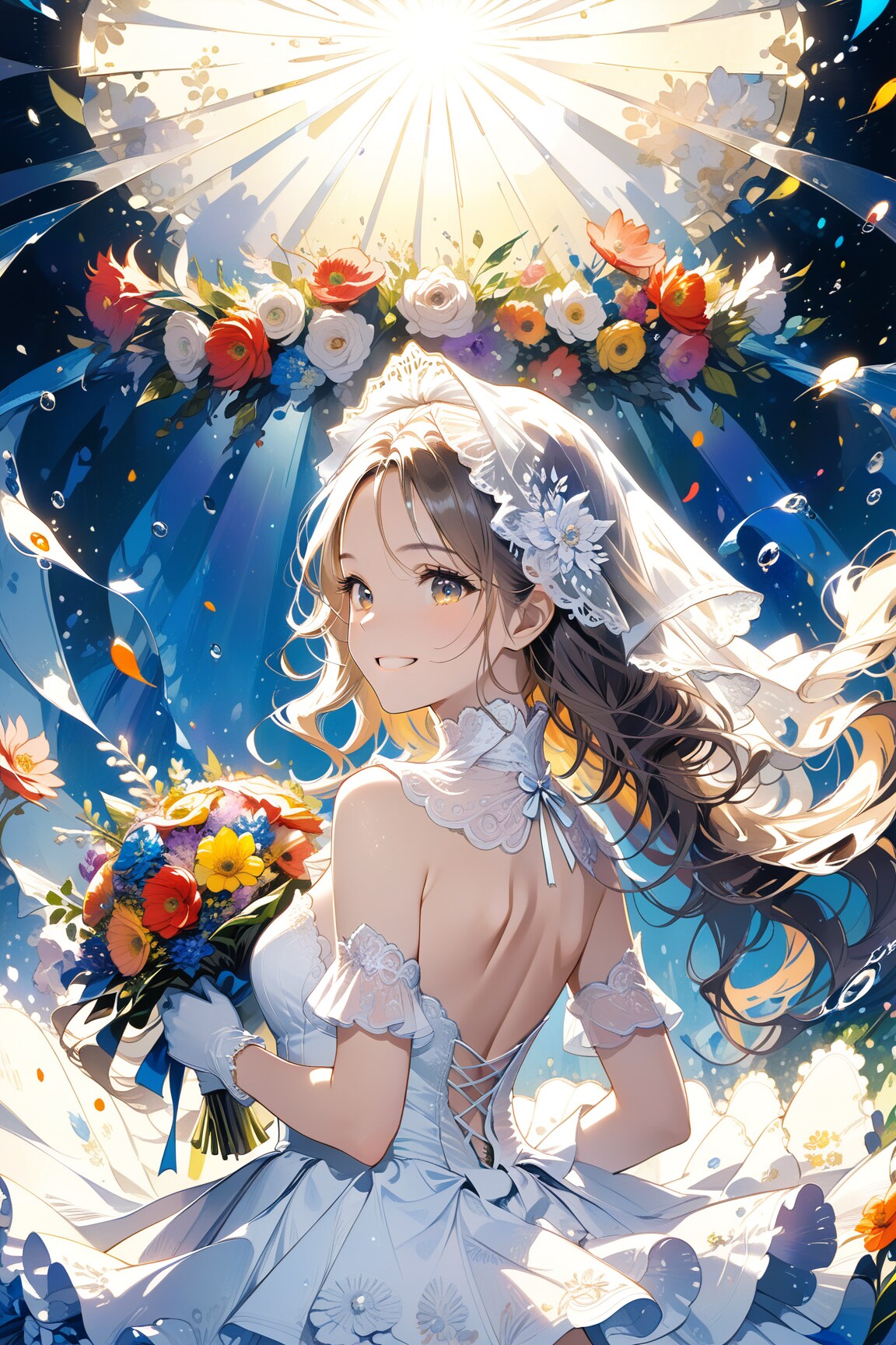 嬉しさと恥ずかしさと両親と別れて暮らす寂しさを表現。ボディー見せバージョンです〜ドレスのディテールがLoRAのおかげで、上手く描けてます。