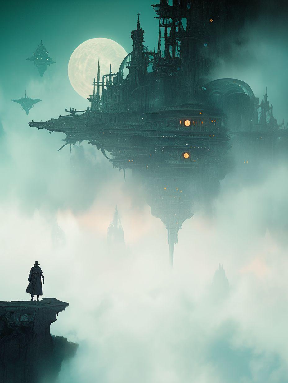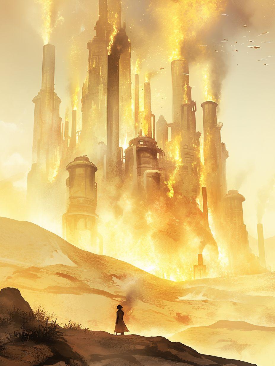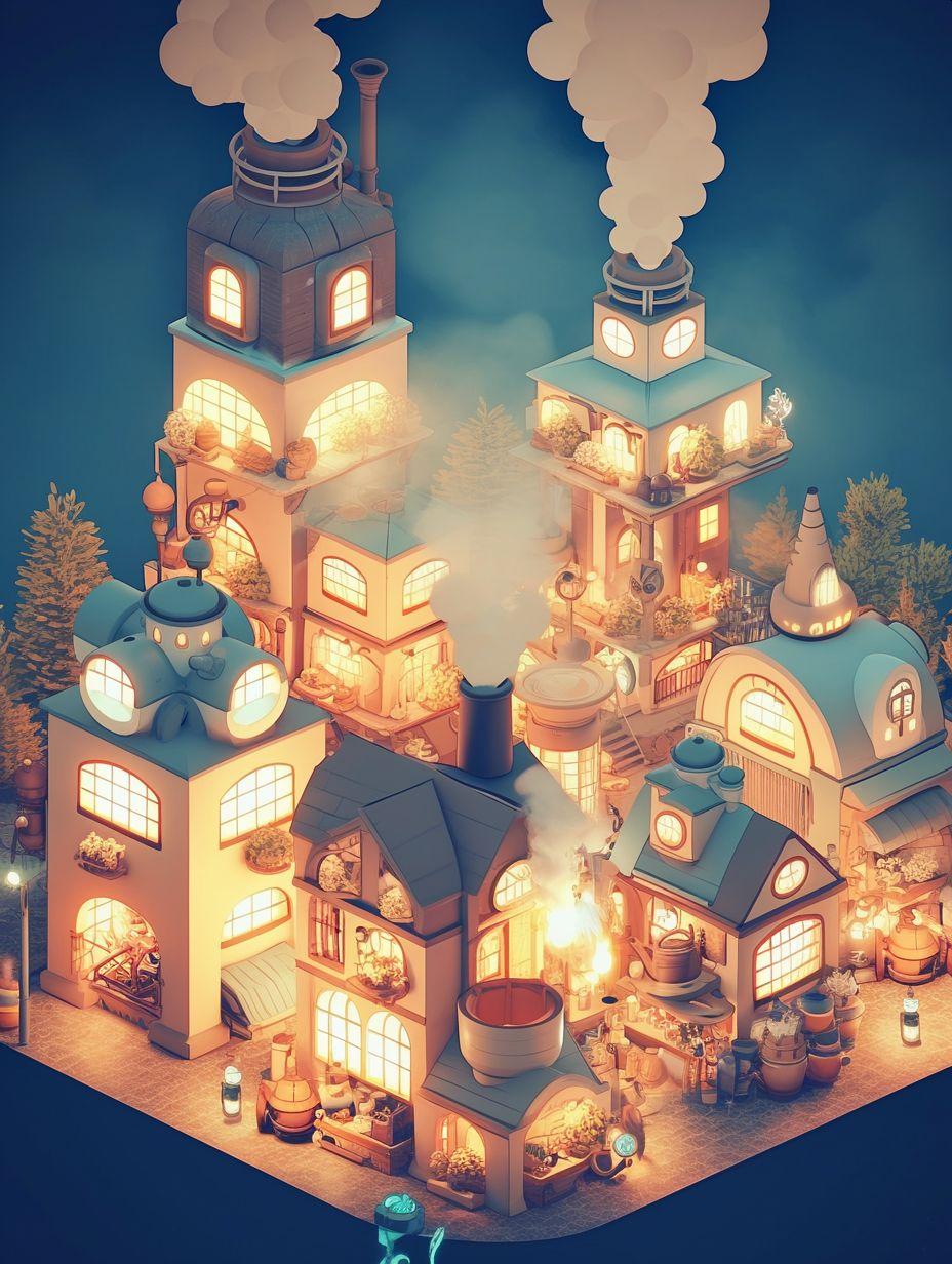工場地帯の夜の夜景を指定したつもりだが、「幻想的な」といれたせいか、異世界のようなイラストになった。