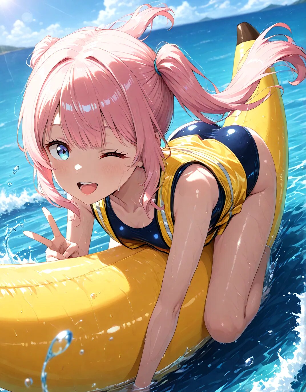 以前、ライフジャケット+スク水+バナナボートをされていたイラストを参照いたしました。