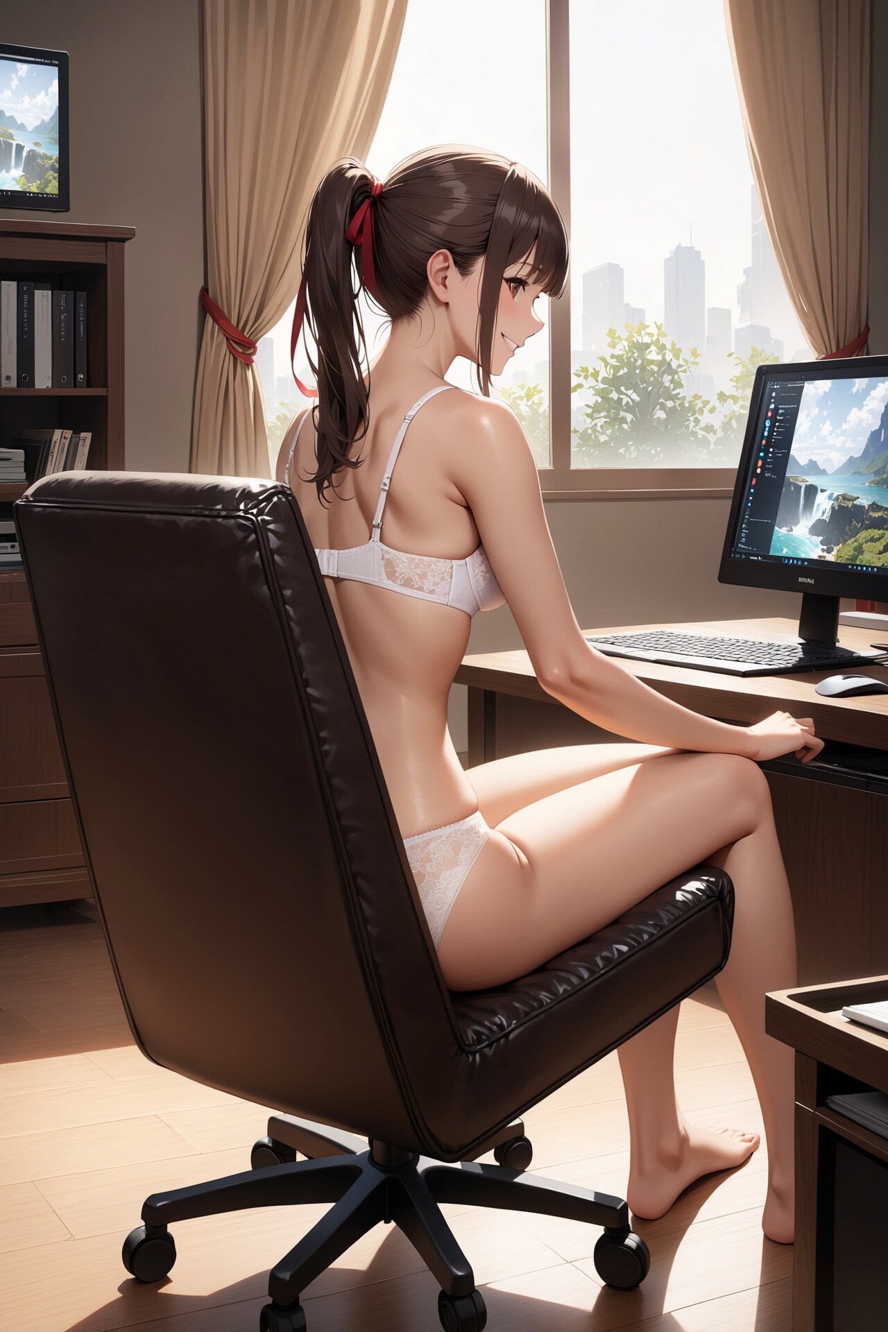2枚目 テレビ会議などの映像を気にしなくて良い在宅勤務で、半裸のまま仕事。