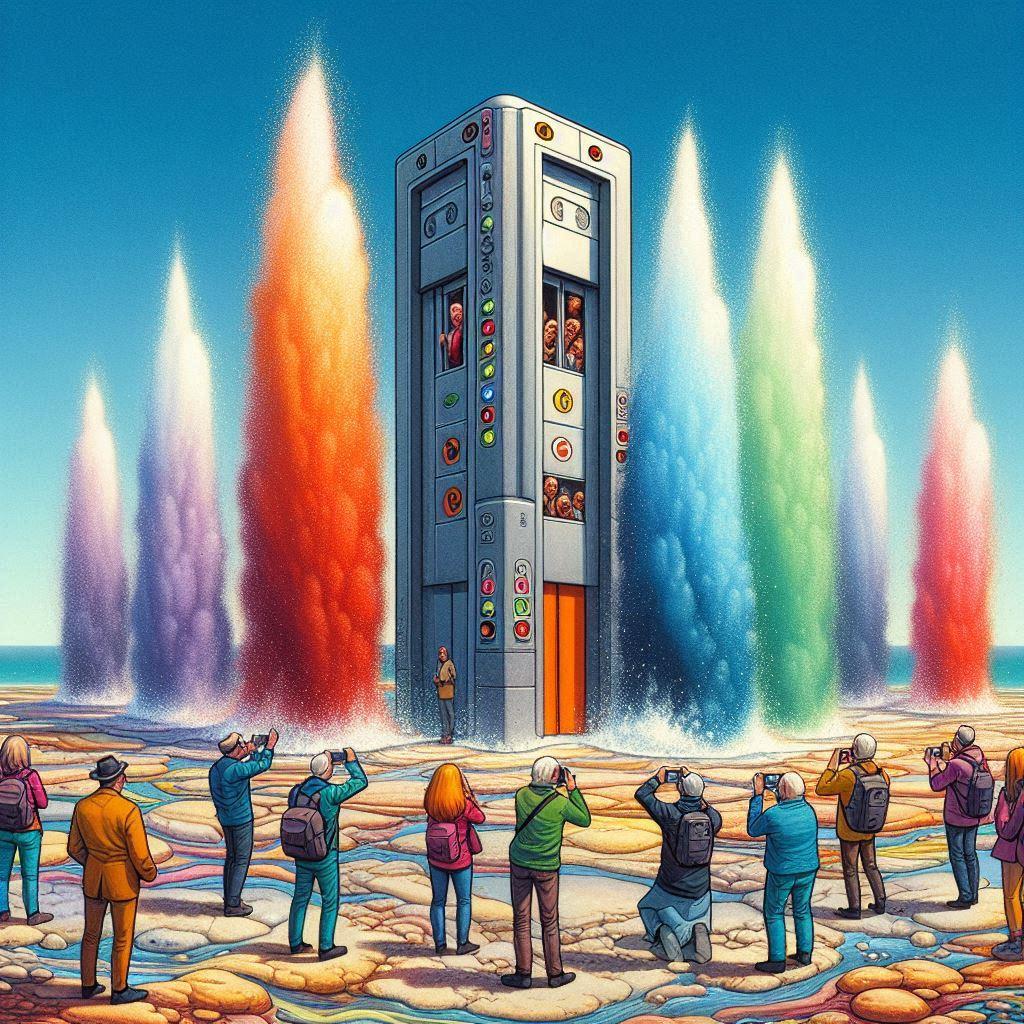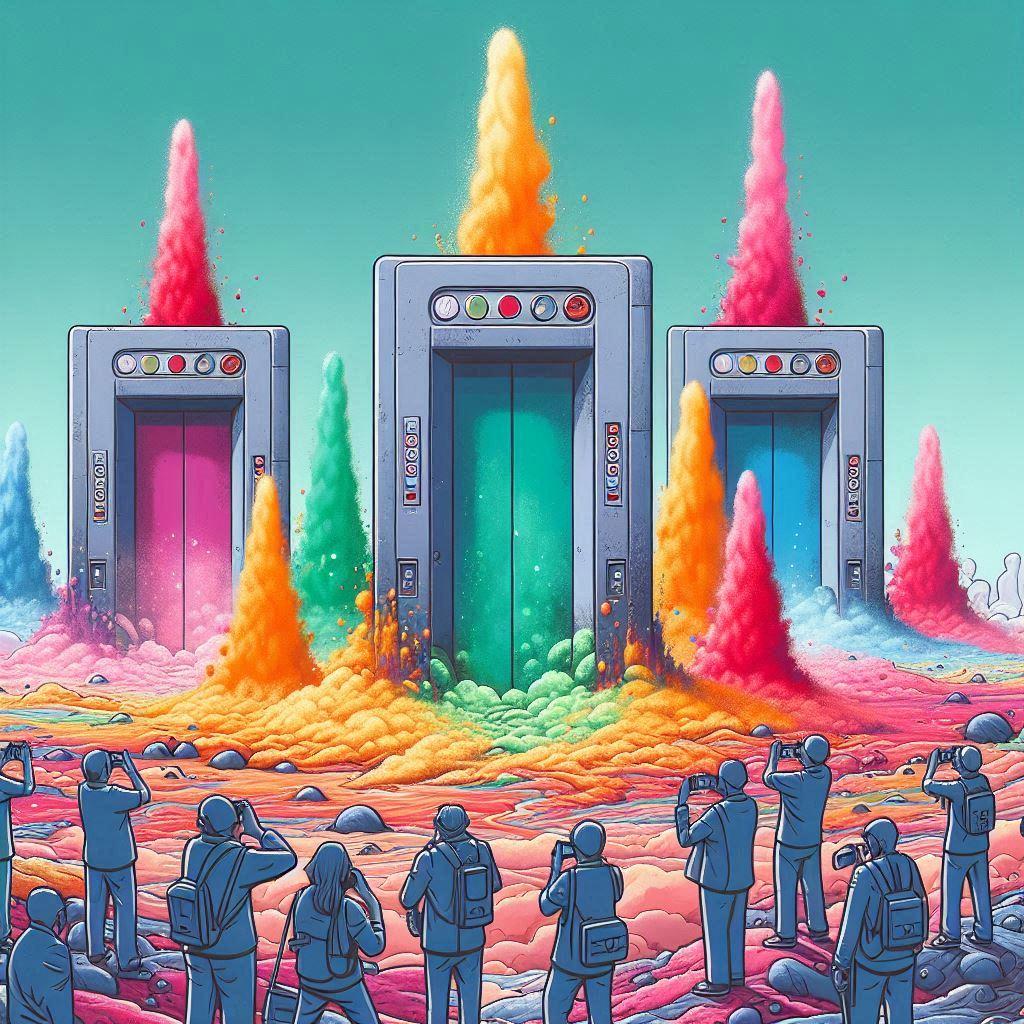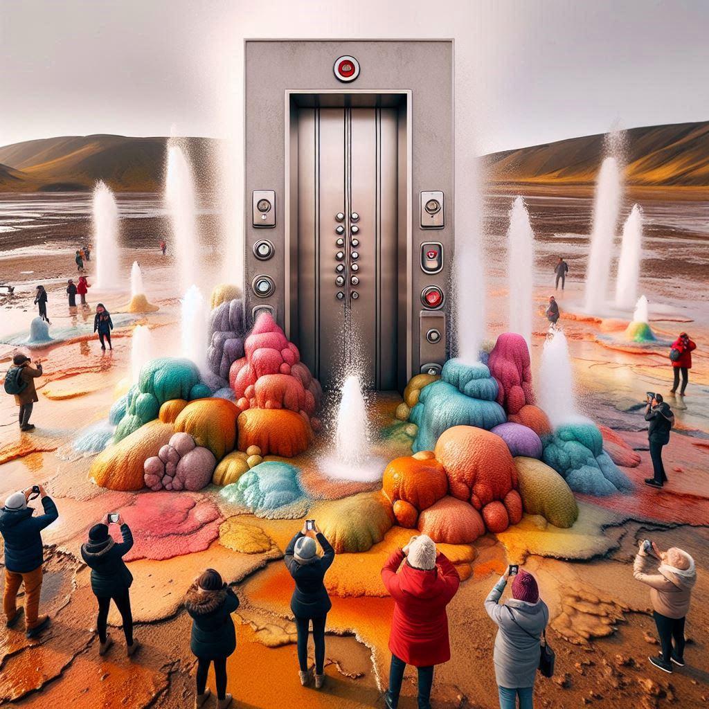 エレベーターのような竜巻=ありえない奇跡 エレベーターのような噴火=幸せをもたらす エレベーターのようなシャンデリア=すてき