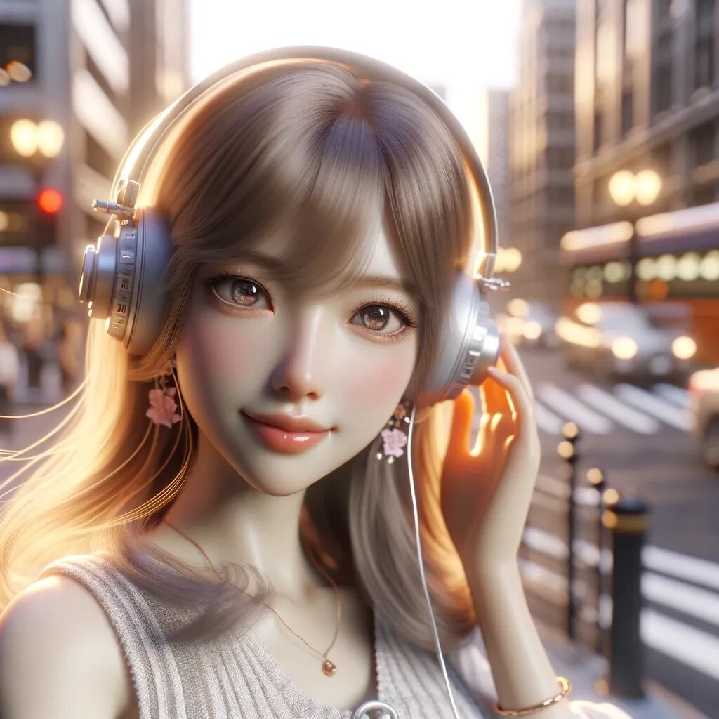 ヘッドフォンで音楽を聴く美少女