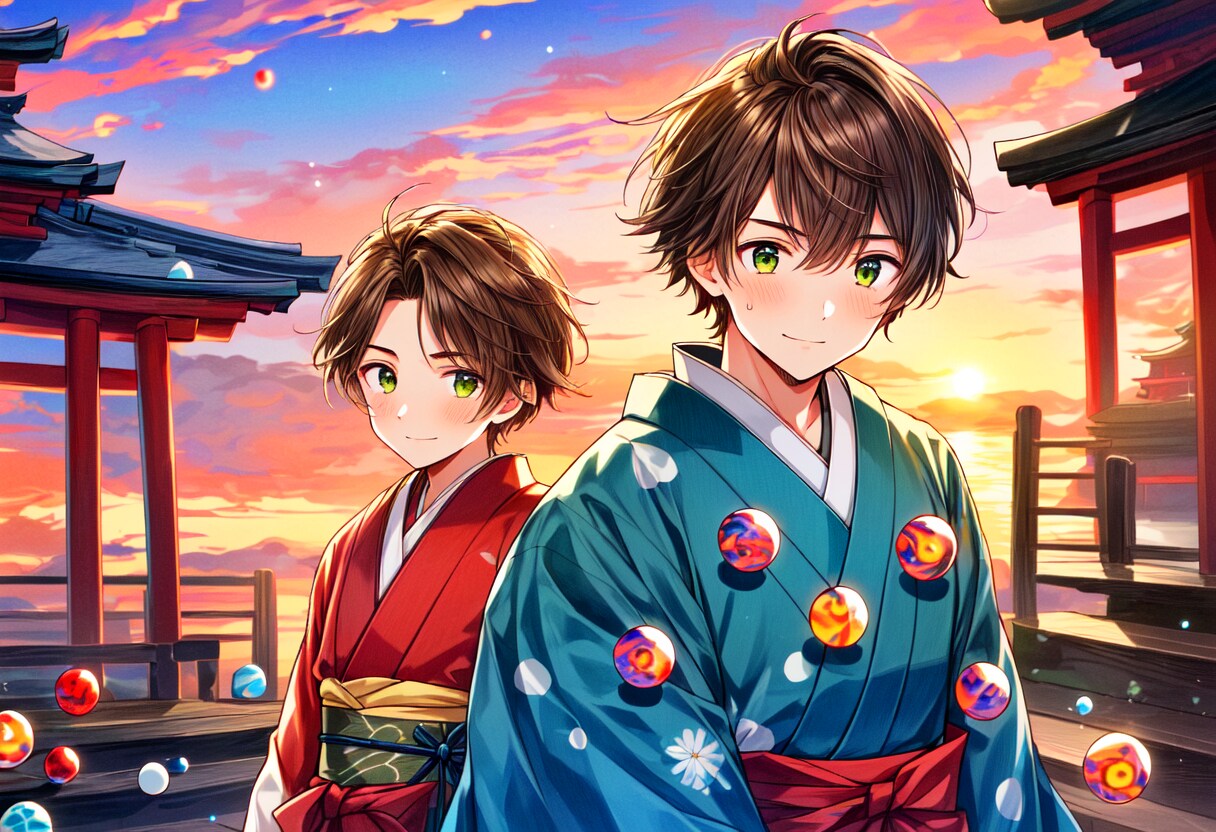 ビー玉お題、ブラウン髪の少年・タケトでも生成してみました。