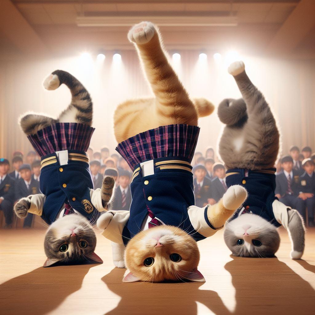 最終日ということで猫たちはダンス大会を開くことにした。盛り上げるためには女装も辞さなかった。(全員オス)
