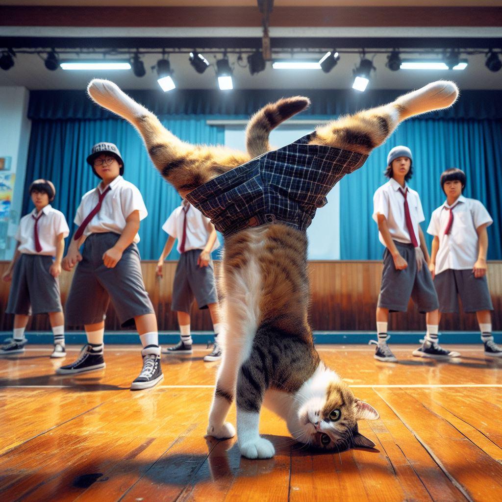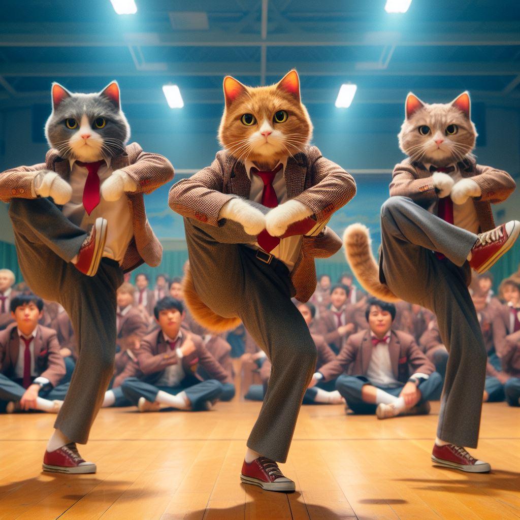 1/9追記:「ダンス大会を開く猫」が2024年1月8日のAIフォトデイリーランキング3位に入りました!