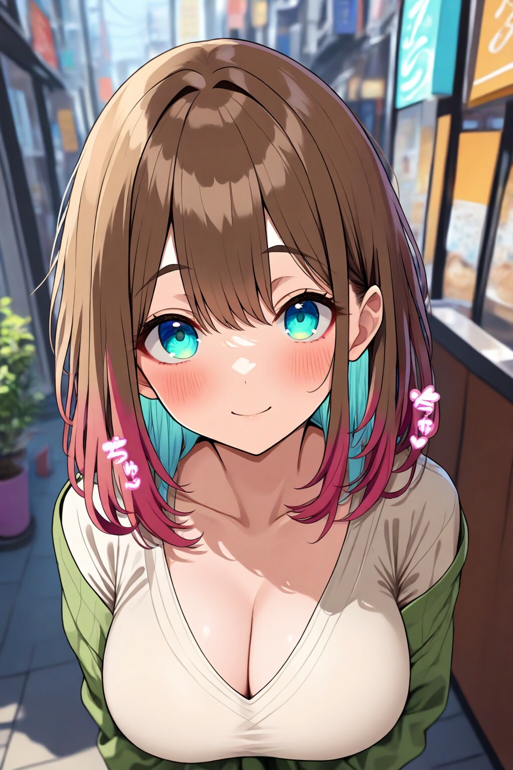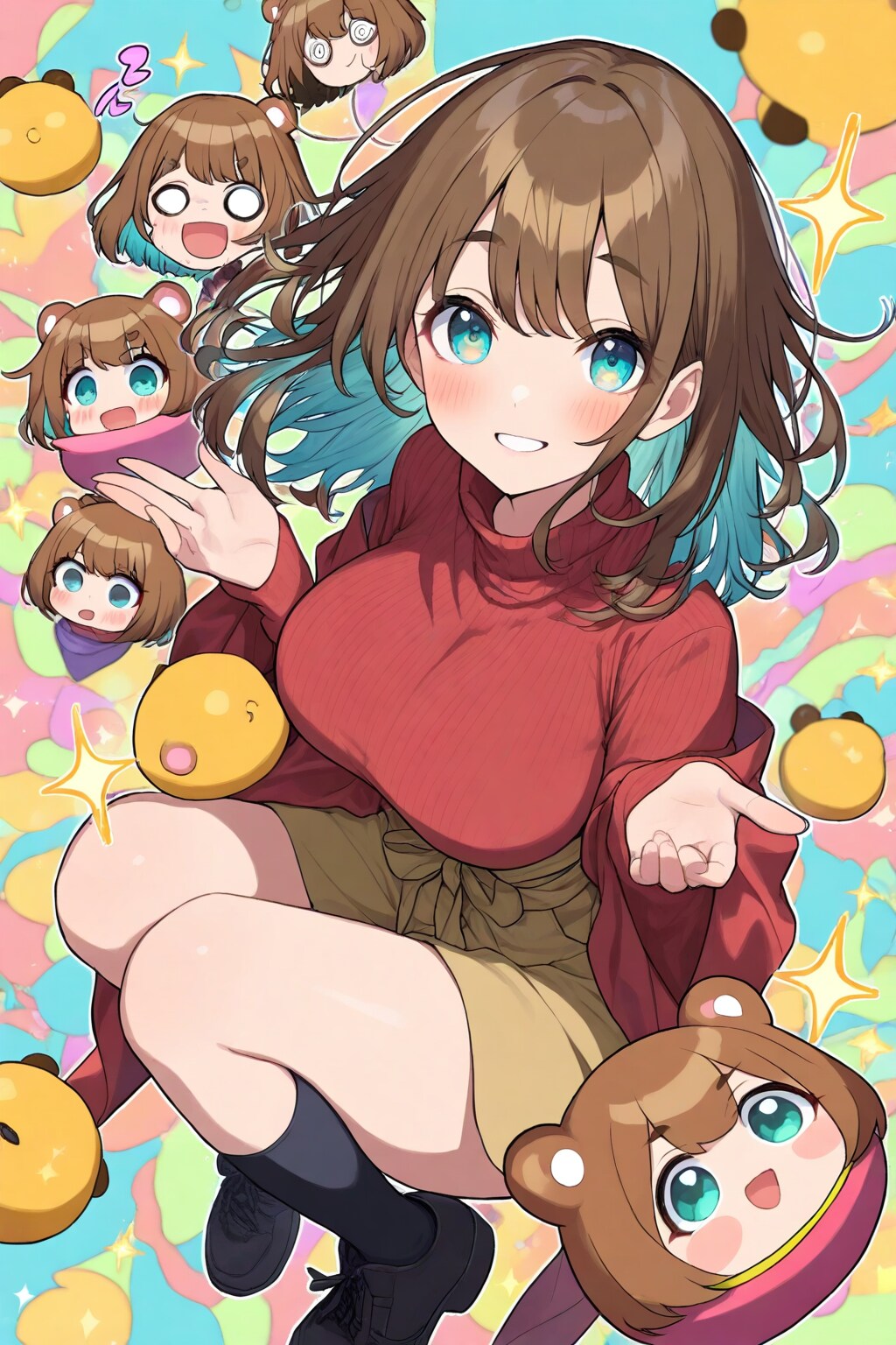 髪の毛のインナーカラーはプロンプトじゃ赤色指定だけど、生成する際は色は気にしないでもろて。