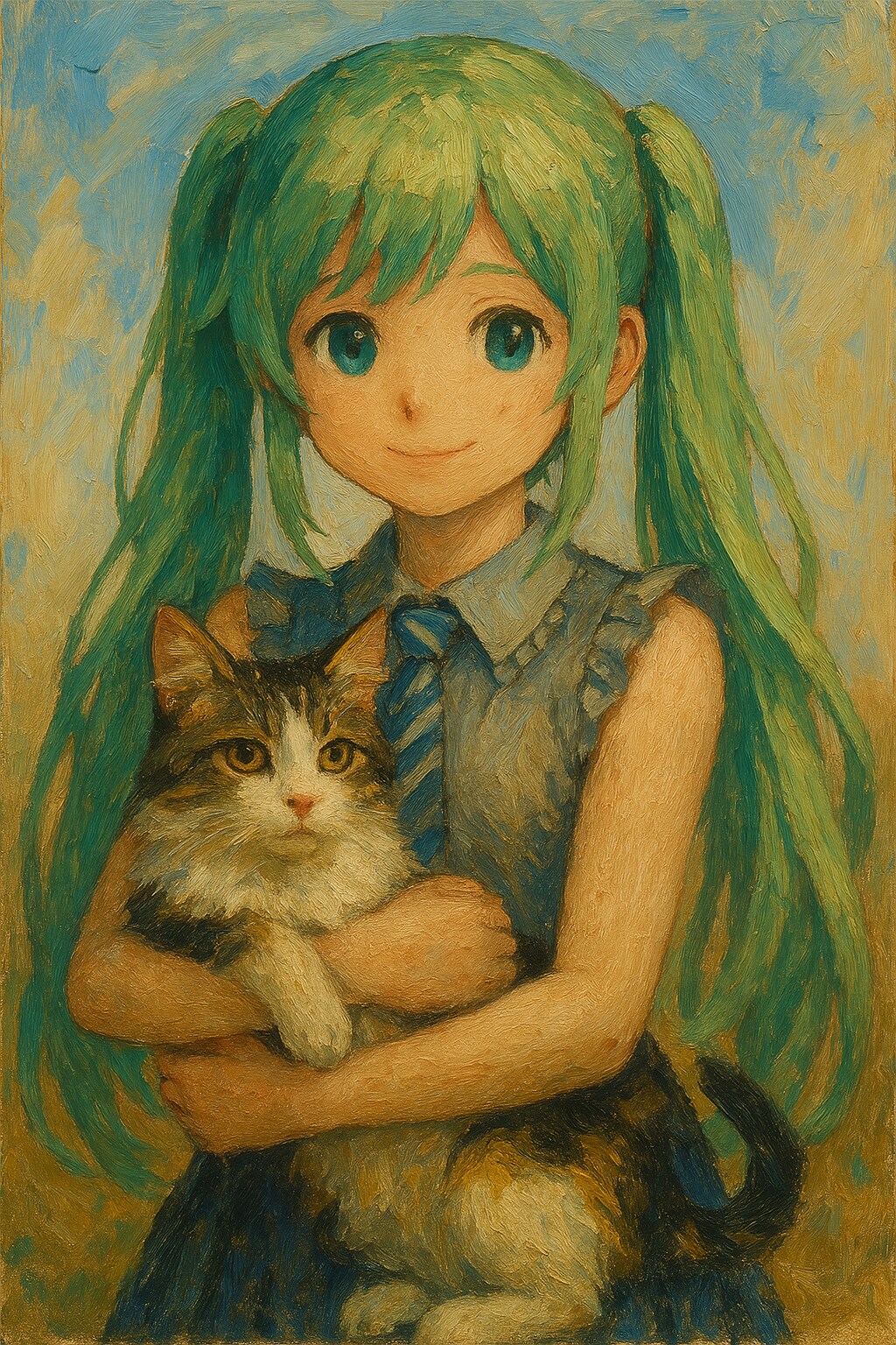 油彩画風と猫の参照画像: