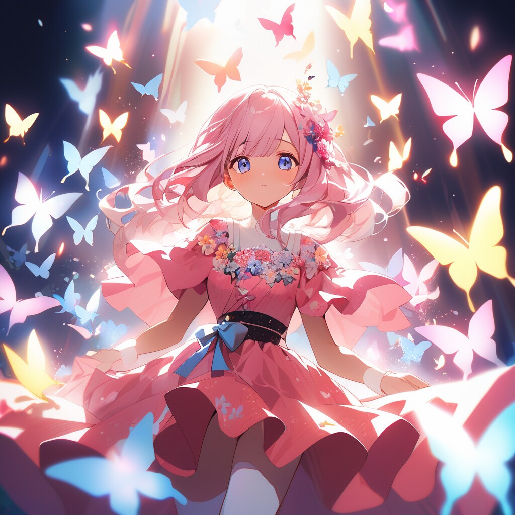 蝶に囲まれている女の子