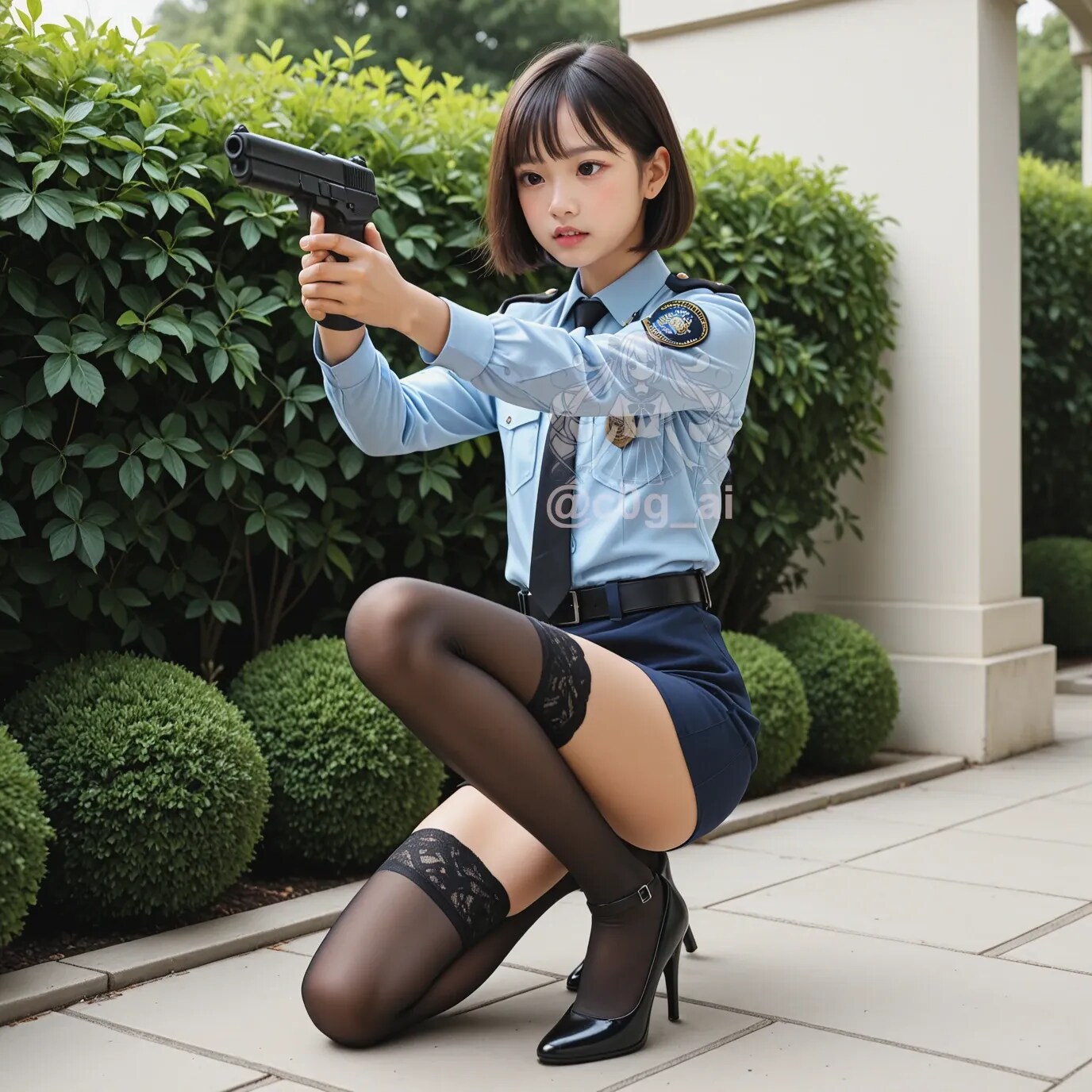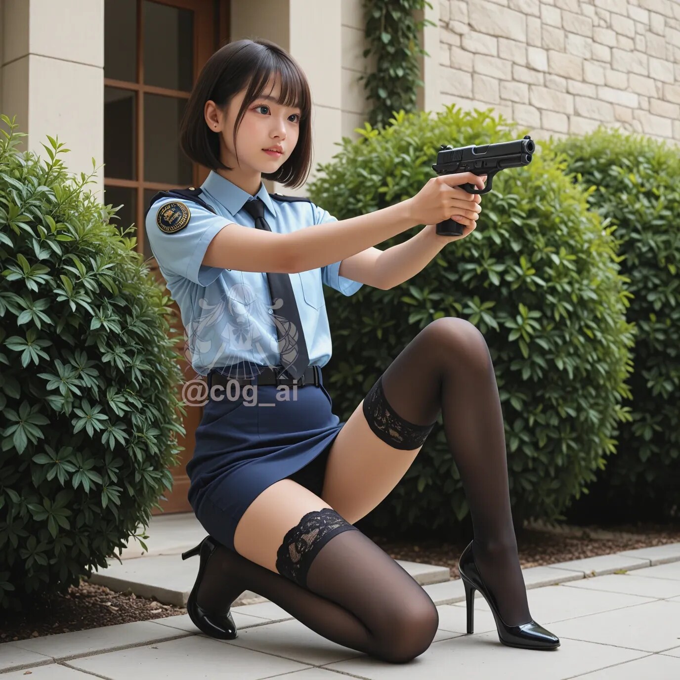 Koto-chan, an active J-girl (Japanese schoolgirl) cosplayer, dressed as a mini-skirted police officer 💙✨