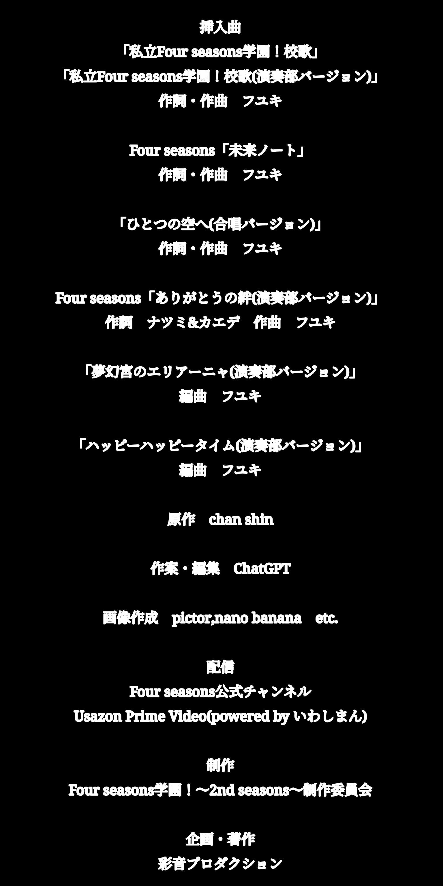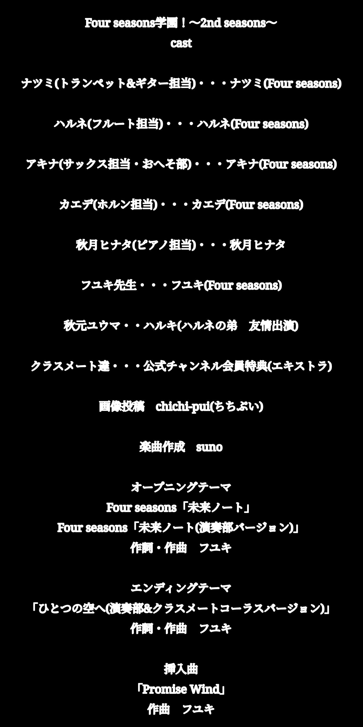 以下のプレイリスト「Four seasons学園!〜2nd seasons ベスト」からどうぞ(suno)