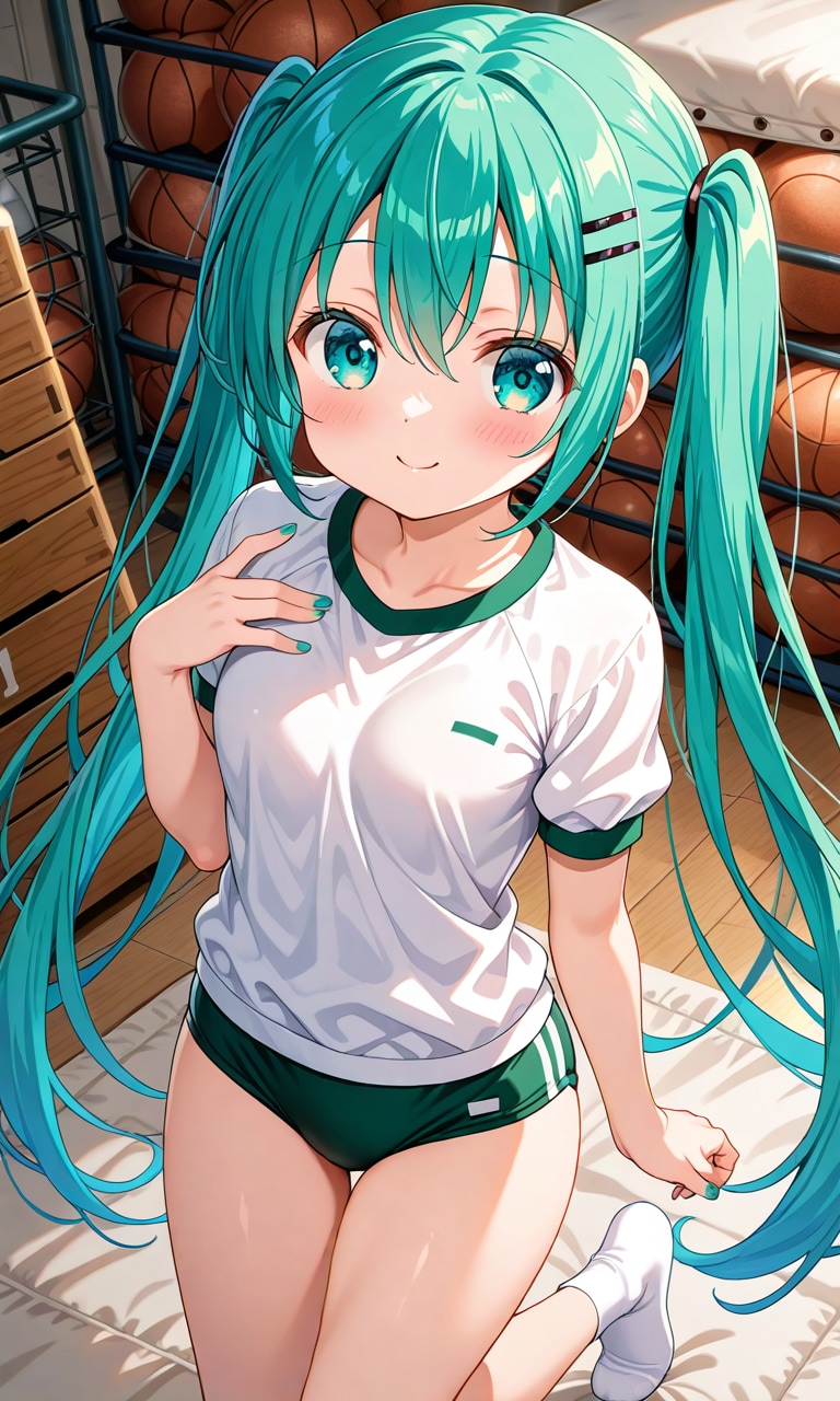 ブルマと体操服のラインはミクさんに併せて緑色です。