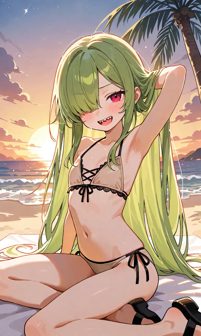 アヤナギさんちの明芽美鳥ちゃんを生成してみました。あえてあんまり着なさそうな水着をチョイス。