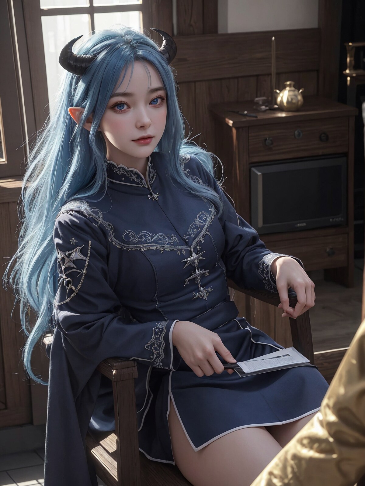 アネ・Ane(青髪のエルフ。おっとりした性格だが魔法は特級クラス、貞操観念はゆるめでその事で妹に心配をかけている)