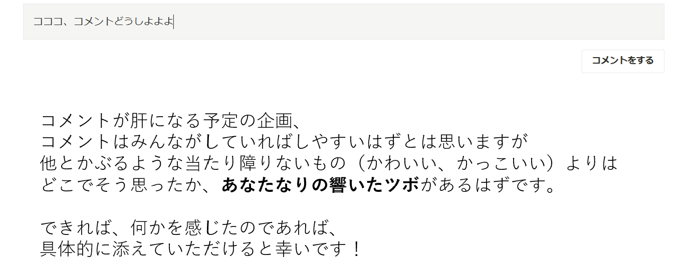 コメント不慣れな方、心配で二の足を踏みがちな方がいらっしゃれば