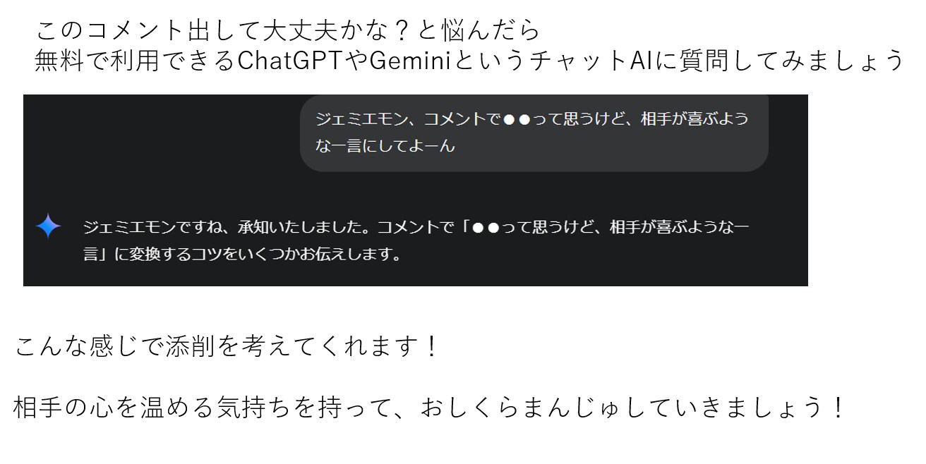 「こういうコメントしようと思ってるけど、大丈夫かな?」など
