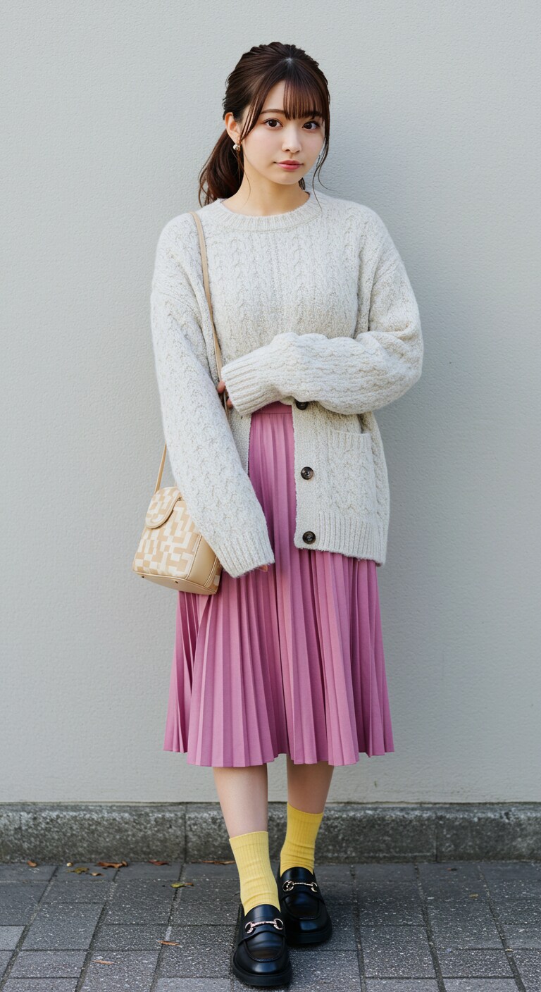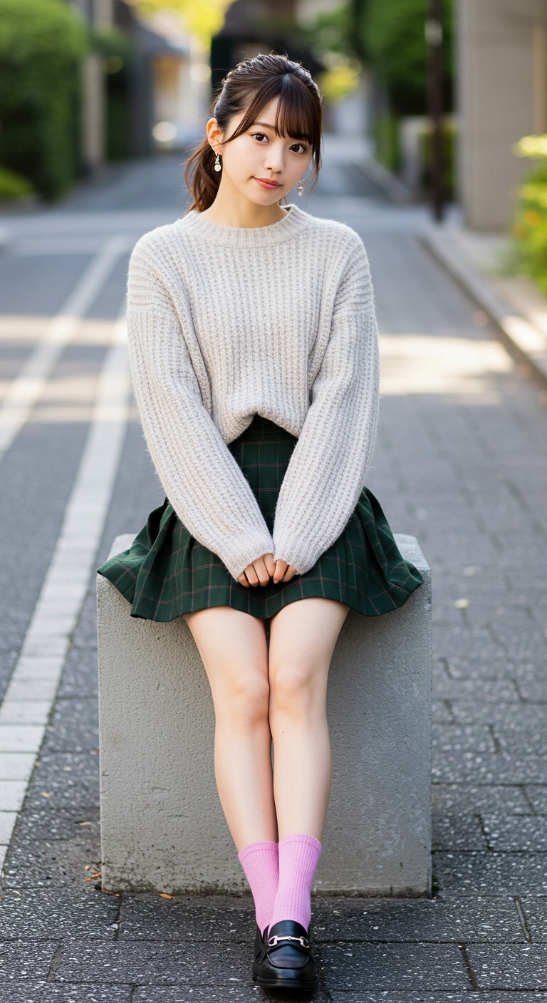 ファッション   服装の色合いとポーズはAIに考える指定をしたら、いつの間にかファッションまで勝手に考えてた。靴が黒一色なのはなぜ。