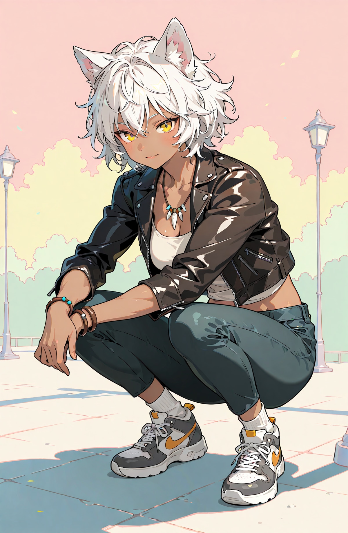 普段からあまり独創的なポーズを取らせたりはしないし、cowboy shot もついついよく使うのですが、もしかするとしゃがんでいる作品はこれが初めてかも...?🌟