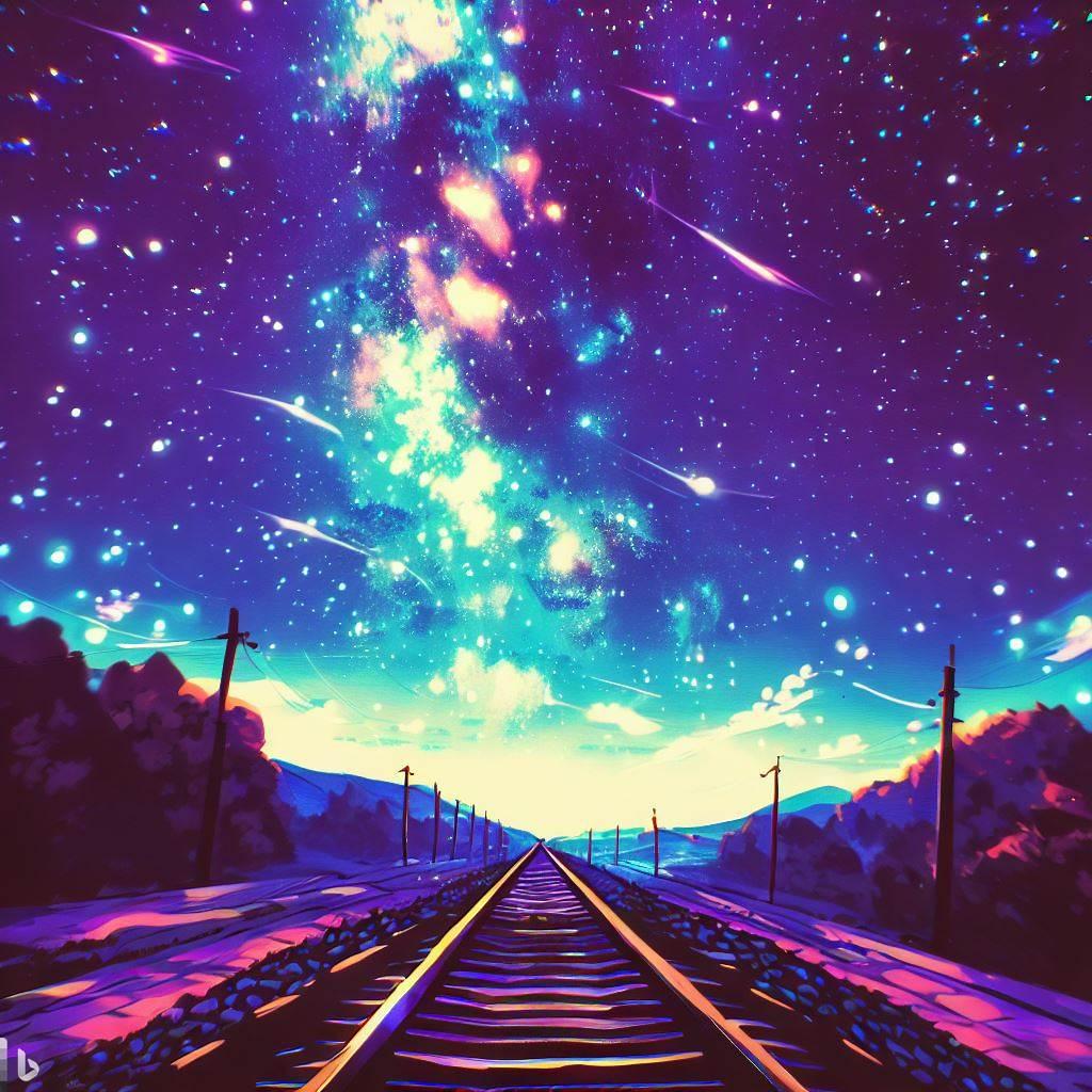 銀河鉄道の夜をイメージして生成しました。