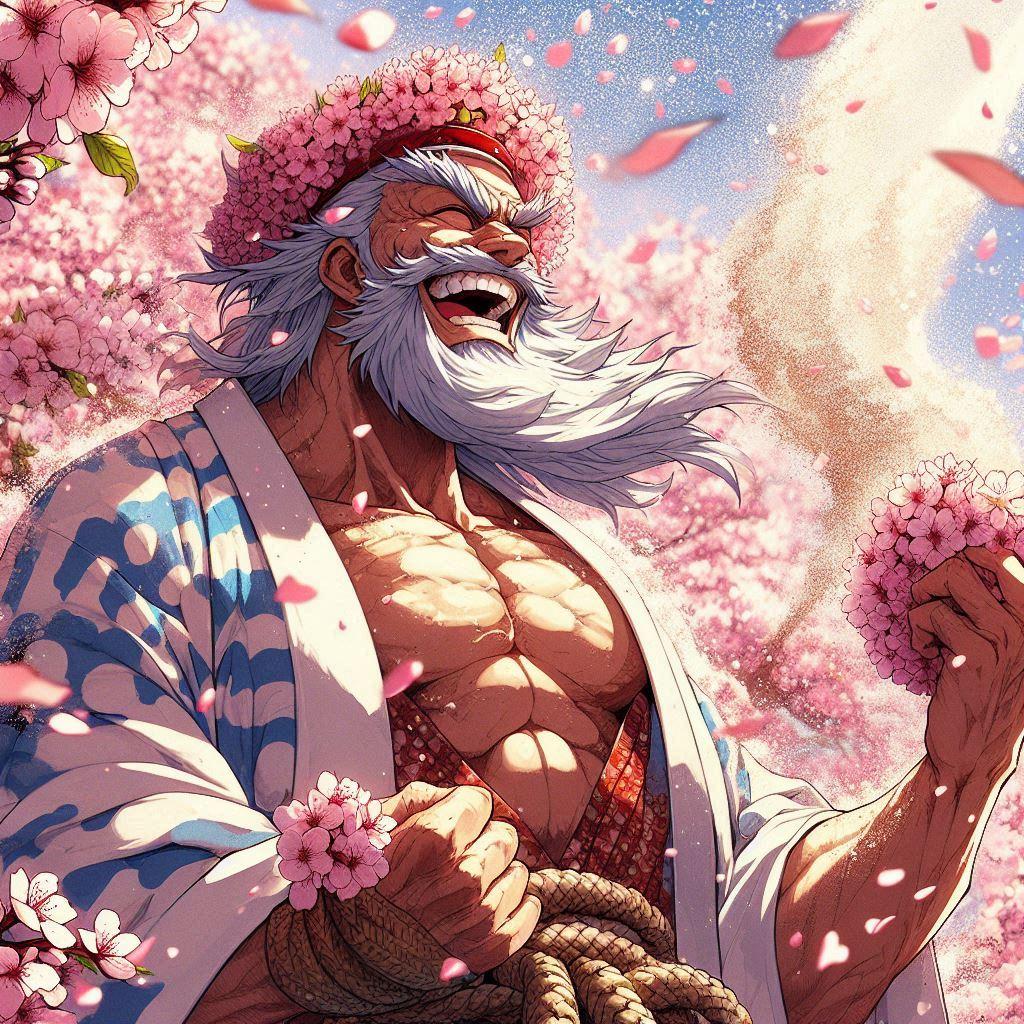 おじいさんはまいにちきんりょくトレーニングをかかさず、ポージングをするだけでかれたきにはまんかいのさくらがさきました。