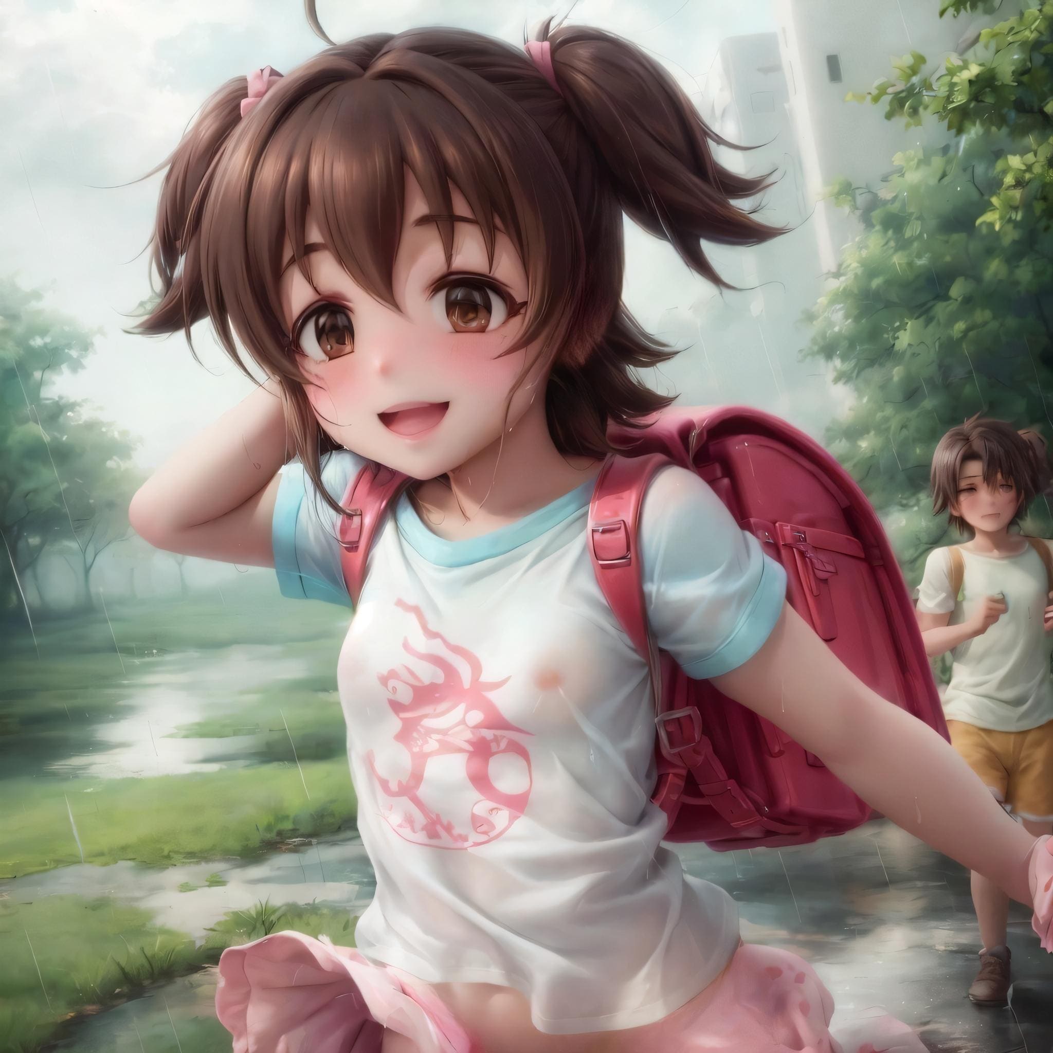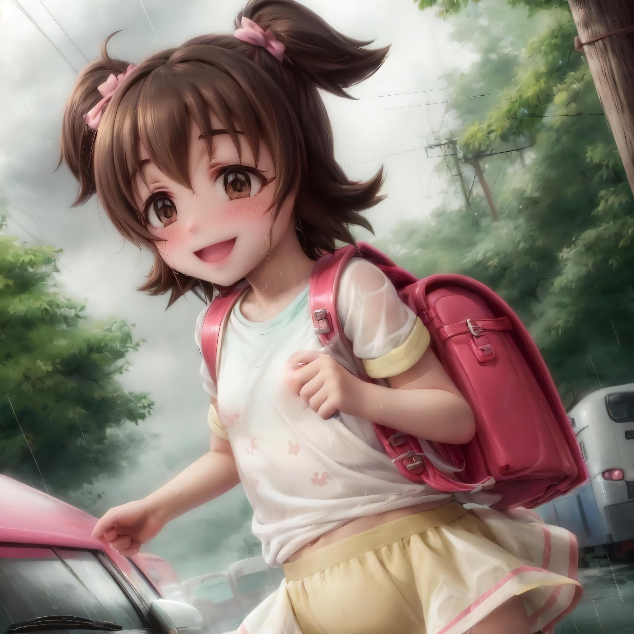 みりあ > 雨降ってきちゃたけど、これくらいなら走って帰れば大丈夫かな・・・テッテテ