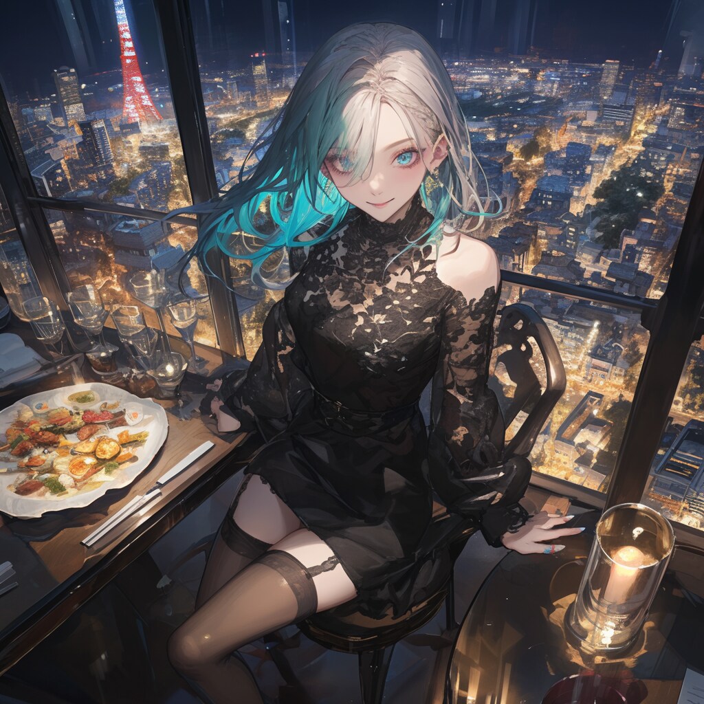 そして、プロンプト間違えた結果一人だけチャイナ服&中華食べてる子が出たけど笑顔がよかったので保管