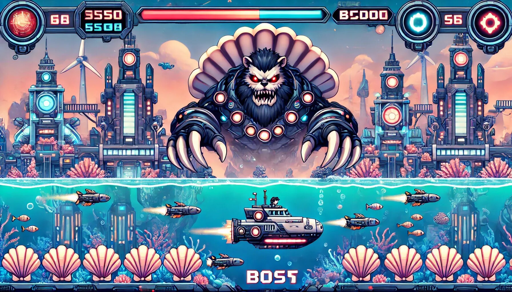 迫力あるビジュアルとゲームUIが、まるでアーケードのシューティングゲームをプレイしているようなワクワク感を演出していますね!🎮🚀