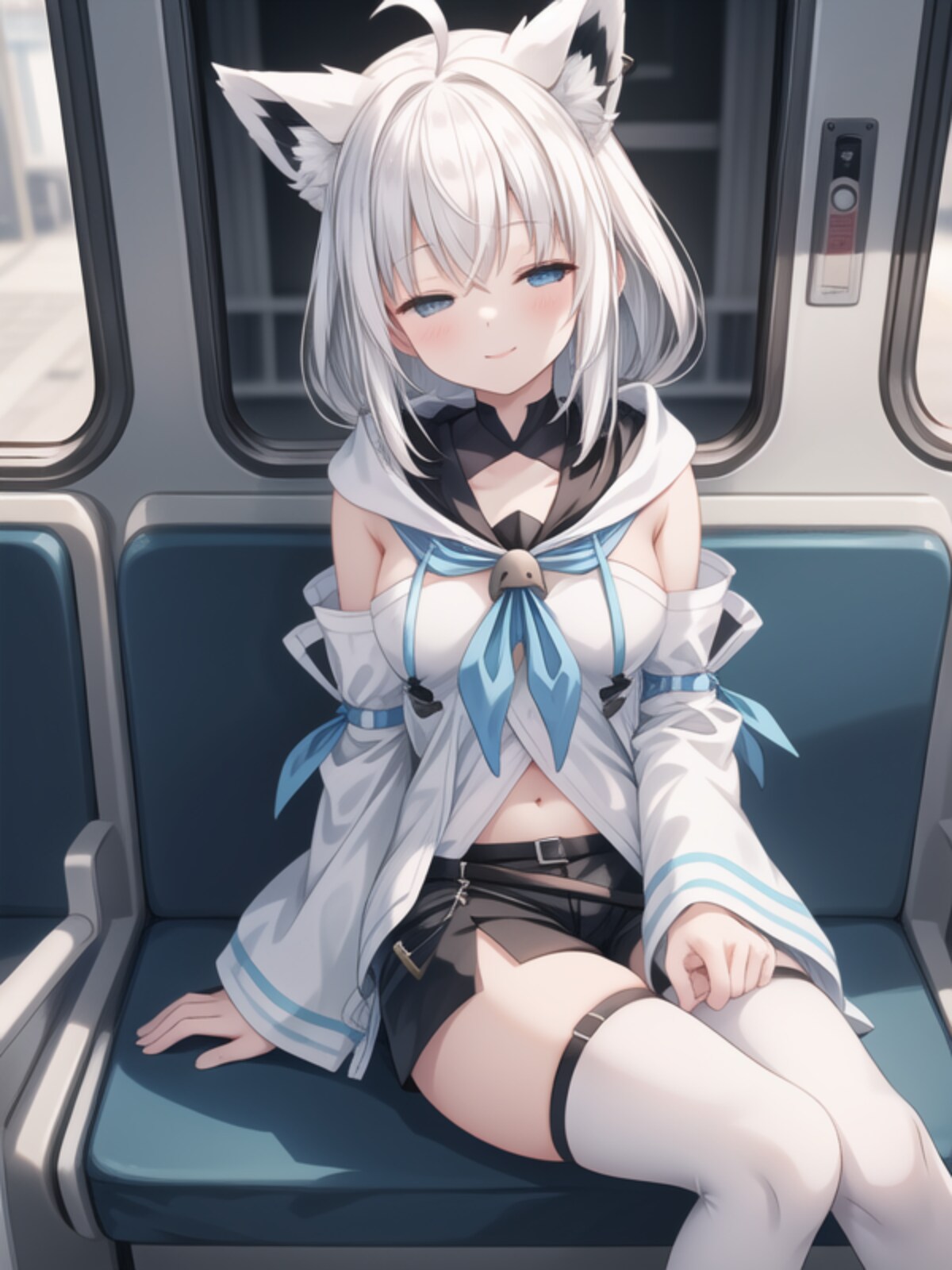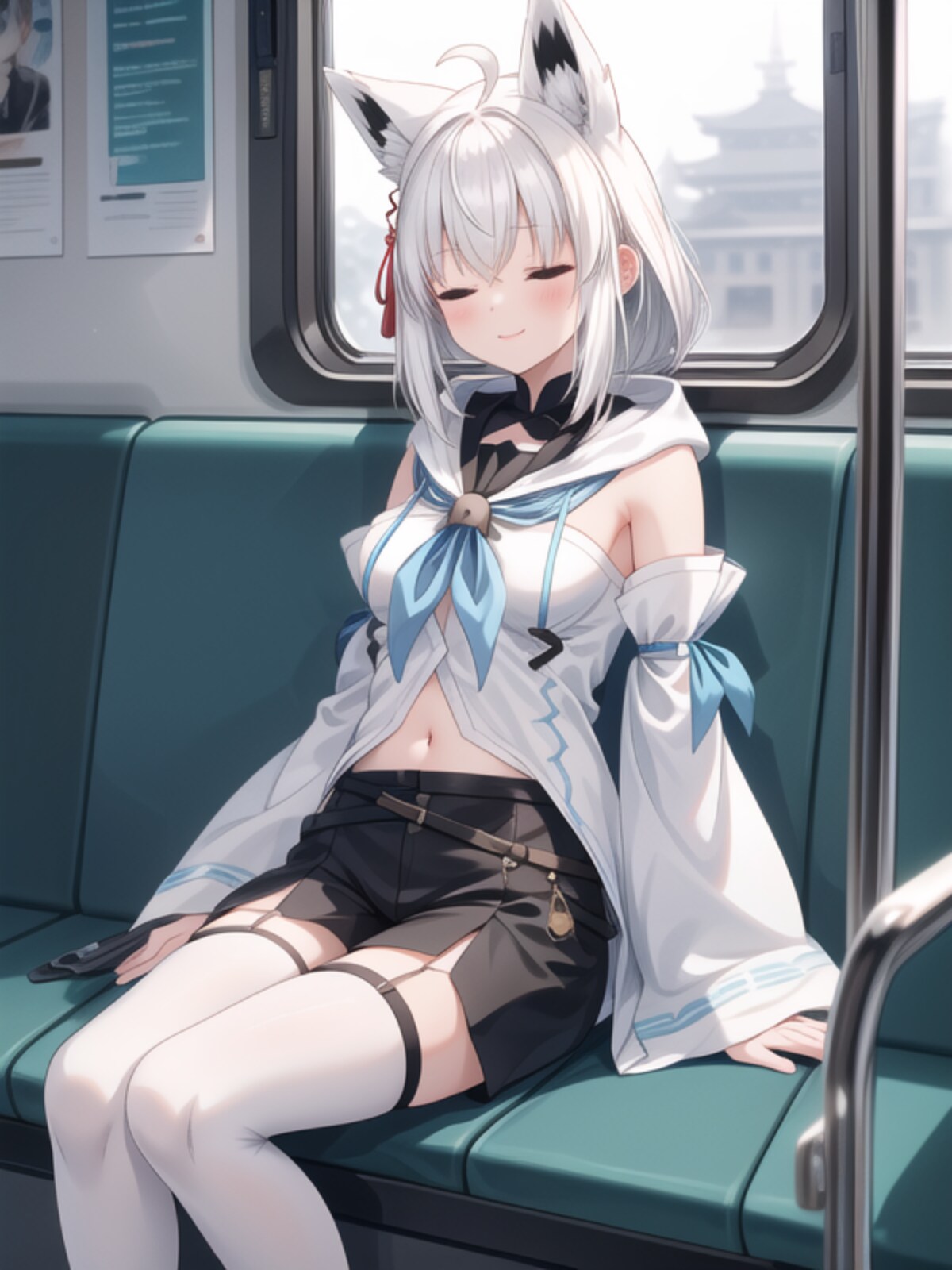 電車の振動で眠たそうにウトウトする白上フブキ様のファンアートをAI先生にお願いした結果がこちら(#aiart/#白上フブキ/#ホロライブ/#Vtuber)