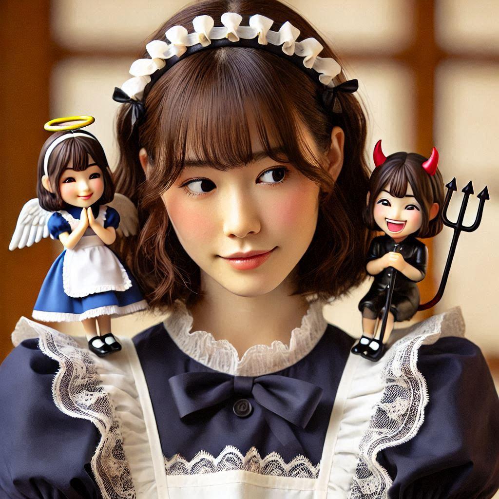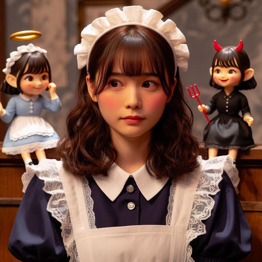天使と悪魔に挟まれて判断に迷うメイド23号