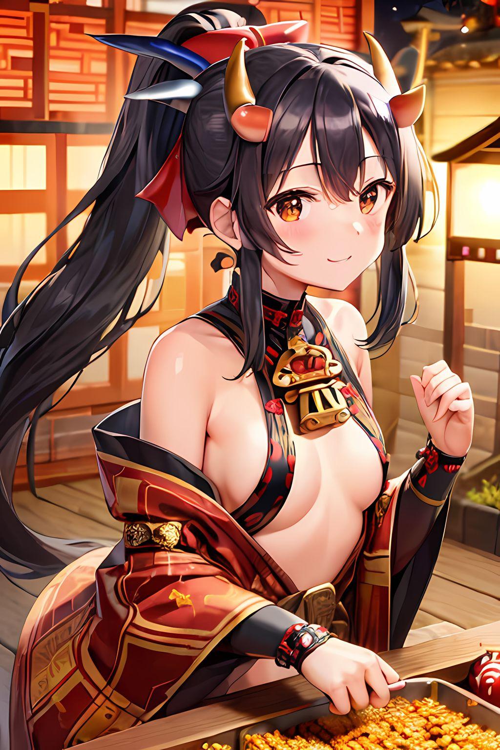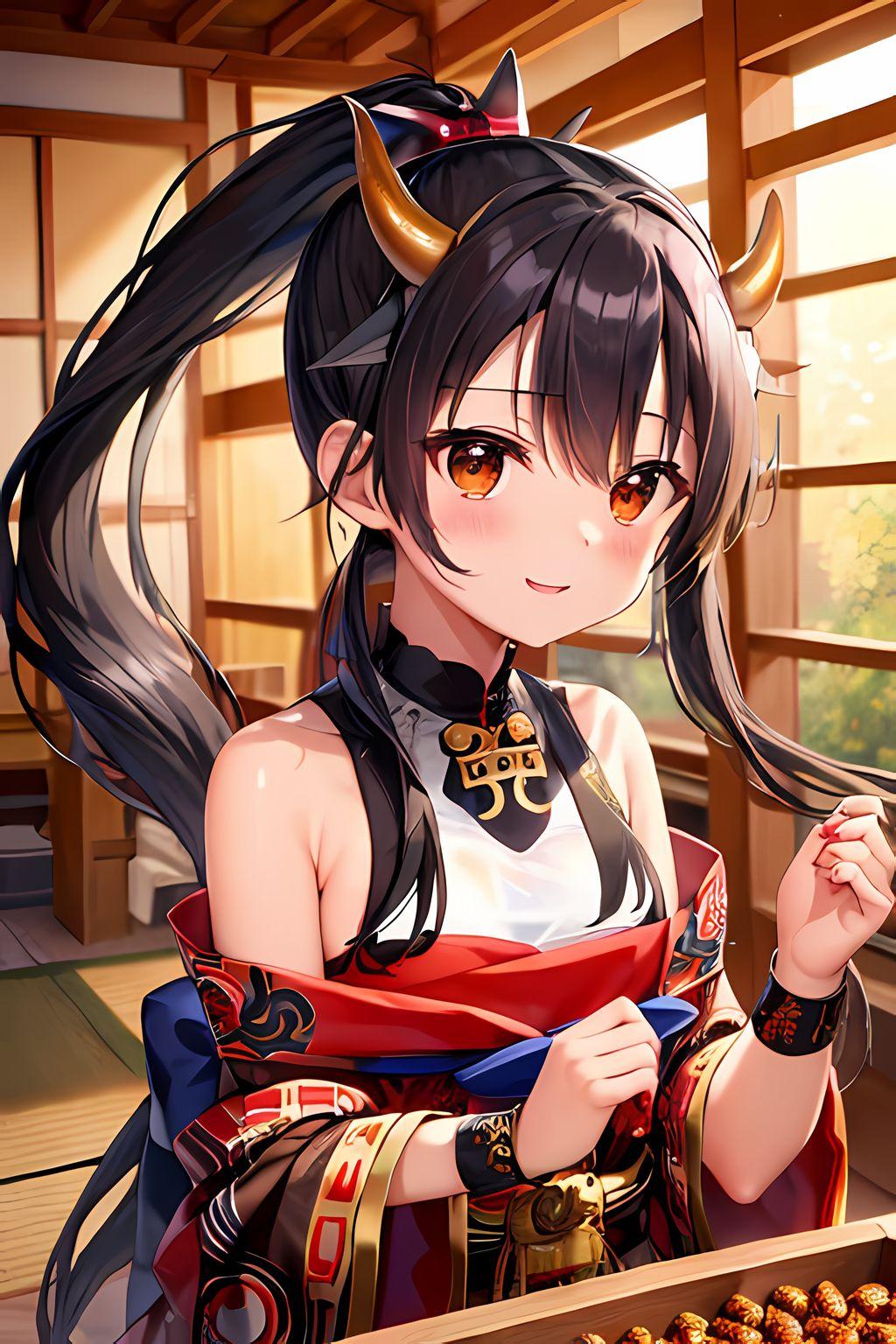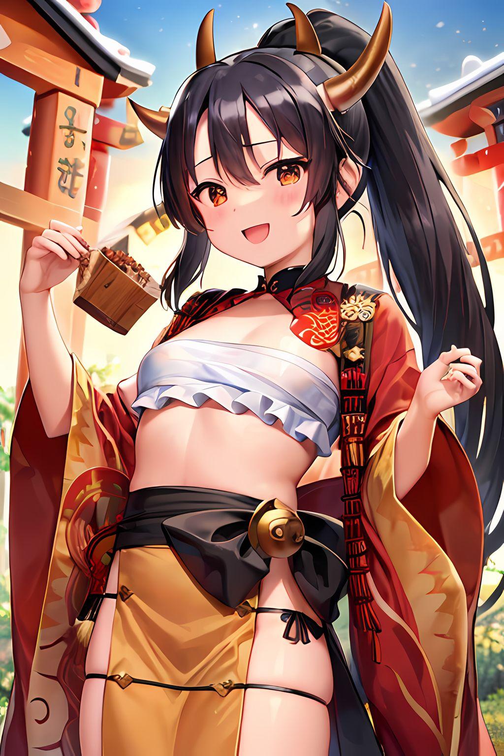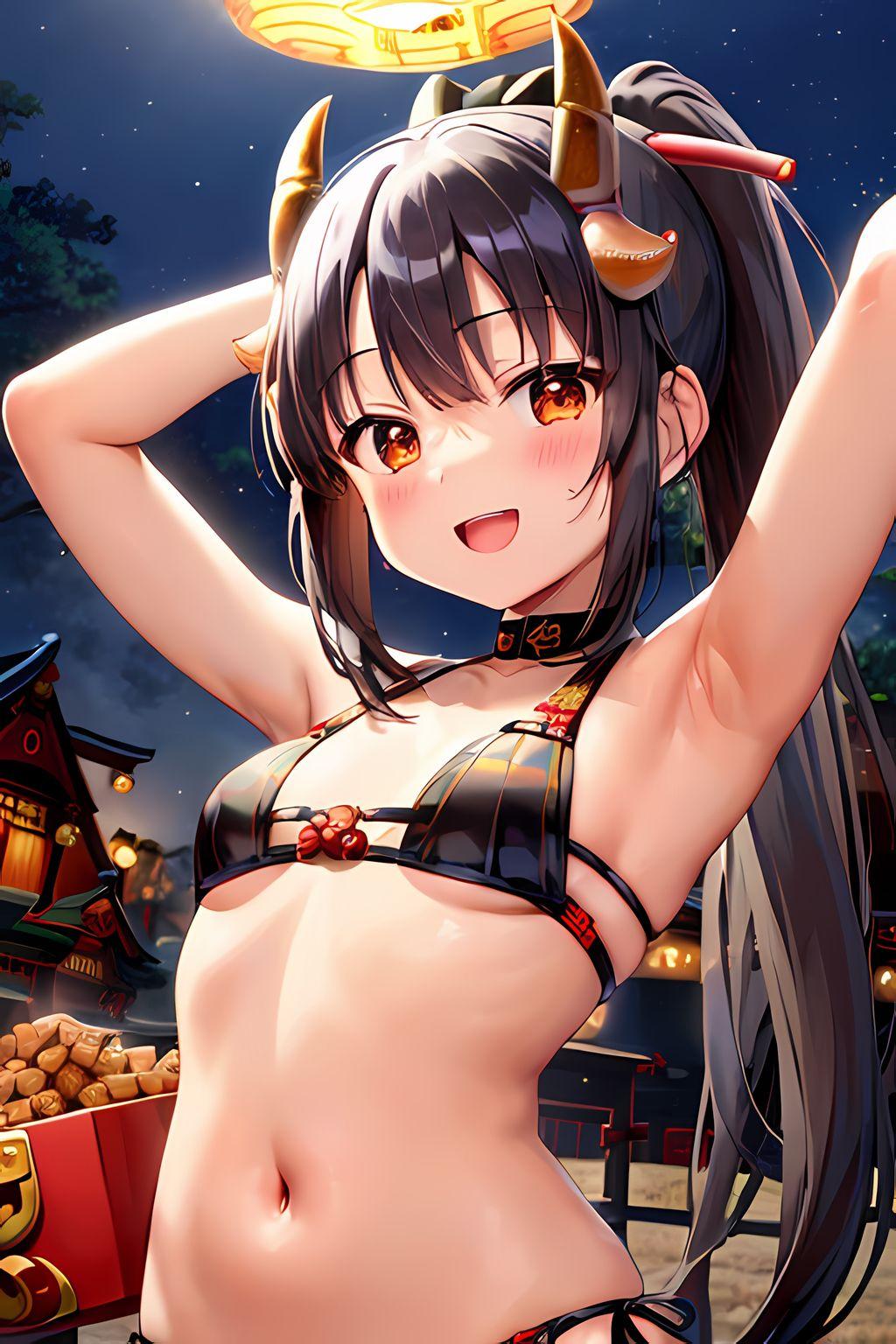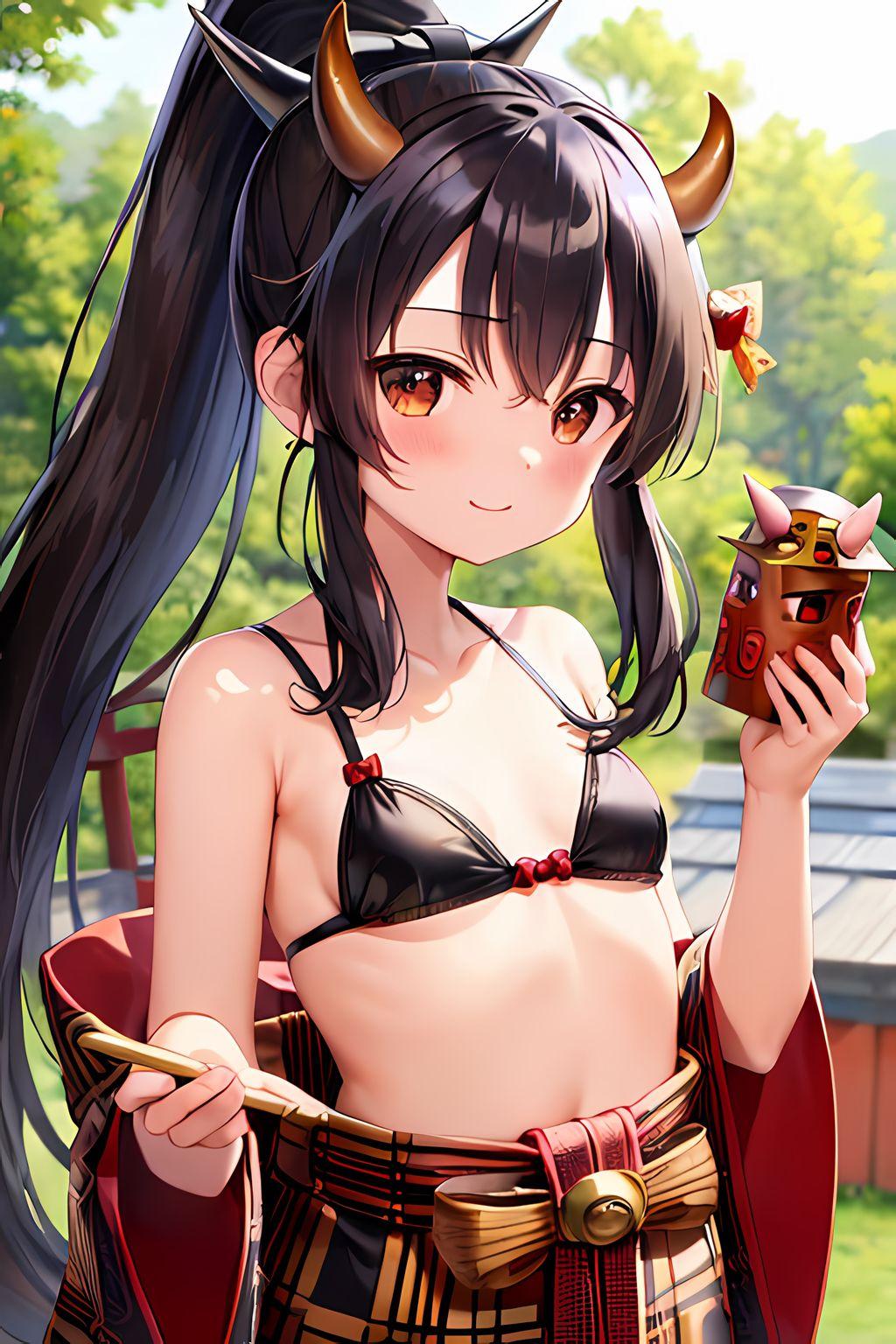 女の子はいつもの黒髪ポニーの茶瞳っ娘(お目々奇麗Ver)(うる星やつらのラムにしようとして断念したのは内緒。そしてすぐ乳放り出そうとするのヤメロ)