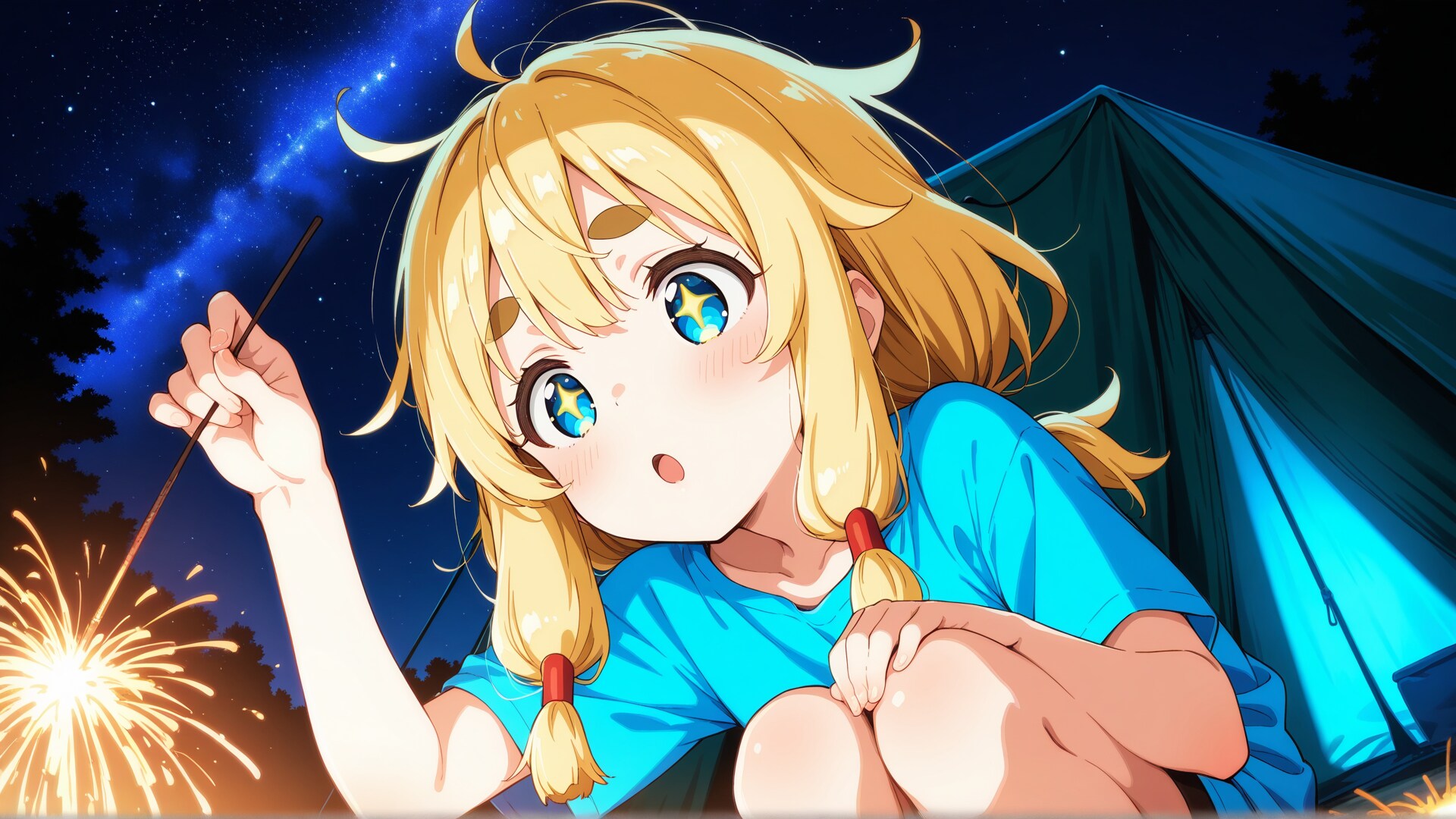 最近打ち上げ花火は作ったしなあと考えキャンプ場で線香花火をやってもらいました